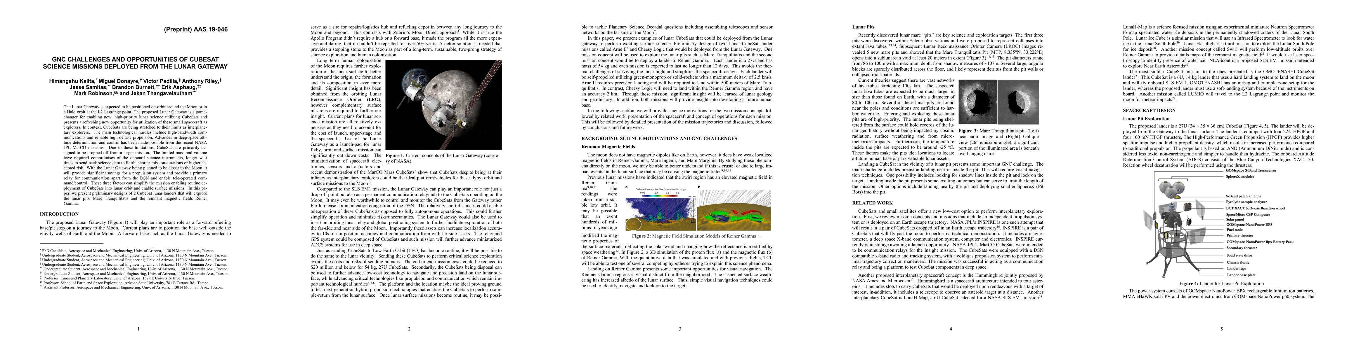 The Lunar Gateway is expected to be positioned on-orbit around the Moon or in a Halo orbit at the L2 Lagrange point. The proposed Lunar Gateway is a game-changer for enabling new, high-priority lunar science utilizing Cu-beSats and presents a refreshing new opportunity for utilization of these small spacecraft as explorers. In context, CubeSats are being stretched to their limits as interplanetary explorers. The main technological hurdles include high-bandwidth communications and reliable high delta-v propulsion. Advances in deep-space attitude determination and control has been made possible from the recent NASA JPL MarCO missions. Due to these limitations, CubeSats are primarily designed to be dropped-off from a larger mission. The limited mass and volume have required compromises of the onboard science instruments, longer wait times to send back science data to Earth, shorter mission durations or higher accepted risk. With the Lunar Gateway being planned to be closer to the Moon, it will provide significant savings for a propulsion system and provide a primary relay for communication apart from the DSN and enable tele-operated command/control. These three factors can simplify the mission enabling routine deployment of CubeSats into lunar orbit and enable surface missions. In this paper, we present preliminary designs of 2 CubeSat lunar landers that will explore the lunar pits, Mare Tranquilitatis and the remnant magnetic fields Reiner Gamma.