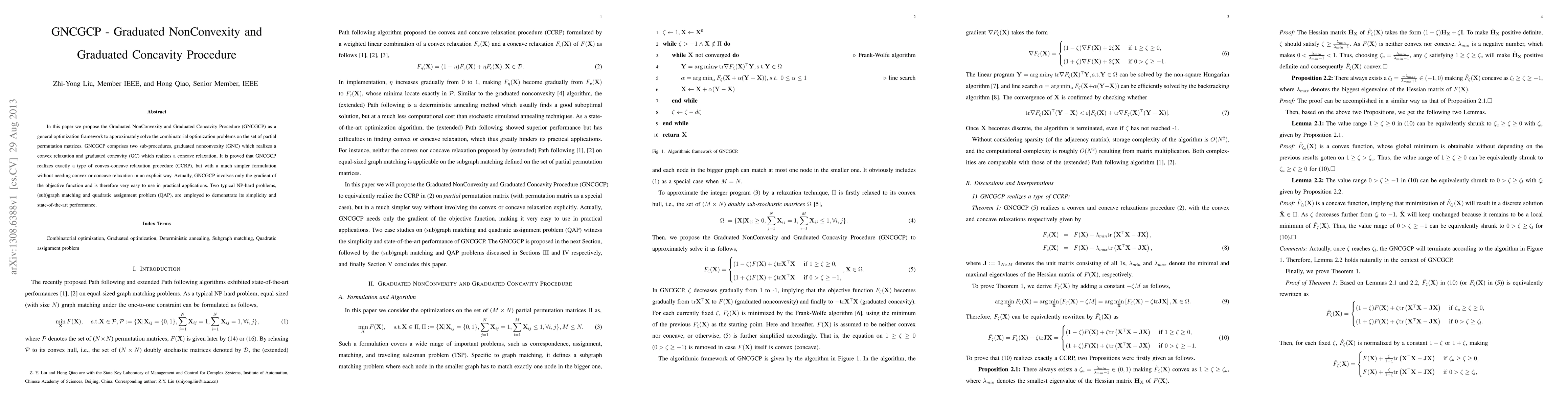 In this paper we propose the Graduated NonConvexity and Graduated Concavity Procedure (GNCGCP) as a general optimization framework to approximately solve the combinatorial optimization problems on the set of partial permutation matrices. GNCGCP comprises two sub-procedures, graduated nonconvexity (GNC) which realizes a convex relaxation and graduated concavity (GC) which realizes a concave relaxation. It is proved that GNCGCP realizes exactly a type of convex-concave relaxation procedure (CCRP), but with a much simpler formulation without needing convex or concave relaxation in an explicit way. Actually, GNCGCP involves only the gradient of the objective function and is therefore very easy to use in practical applications. Two typical NP-hard problems, (sub)graph matching and quadratic assignment problem (QAP), are employed to demonstrate its simplicity and state-of-the-art performance.
