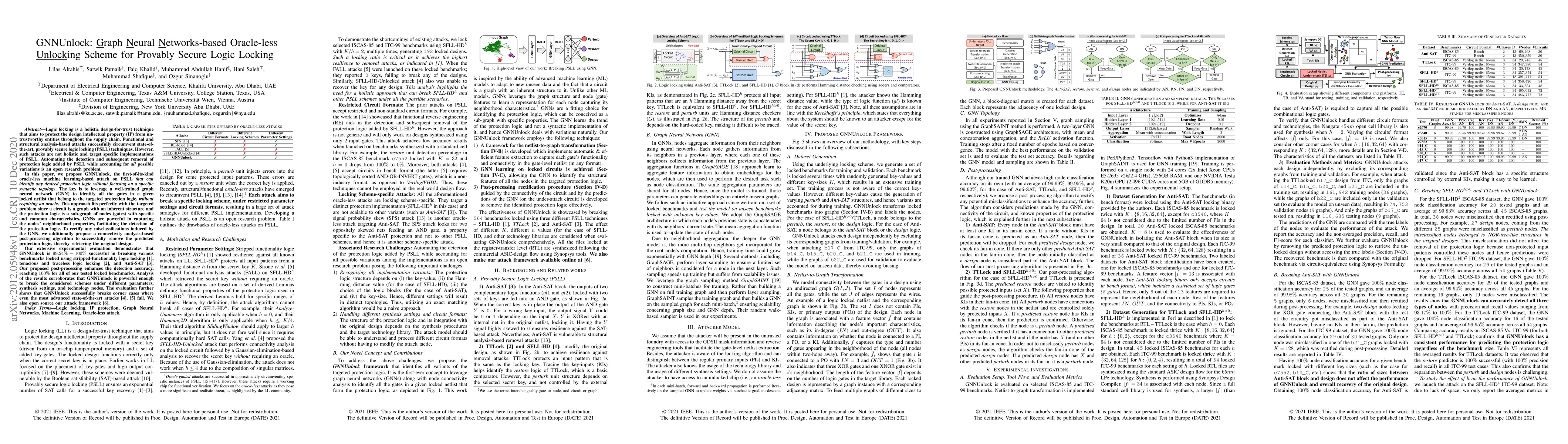 GNNUnlock leverages graph neural networks to identify and break provably secure logic locking without requiring an oracle, achieving 99.24%-100% success in various benchmarks. A post-processing algorithm further enhances accuracy to 100% by rectifying any misclassifications.