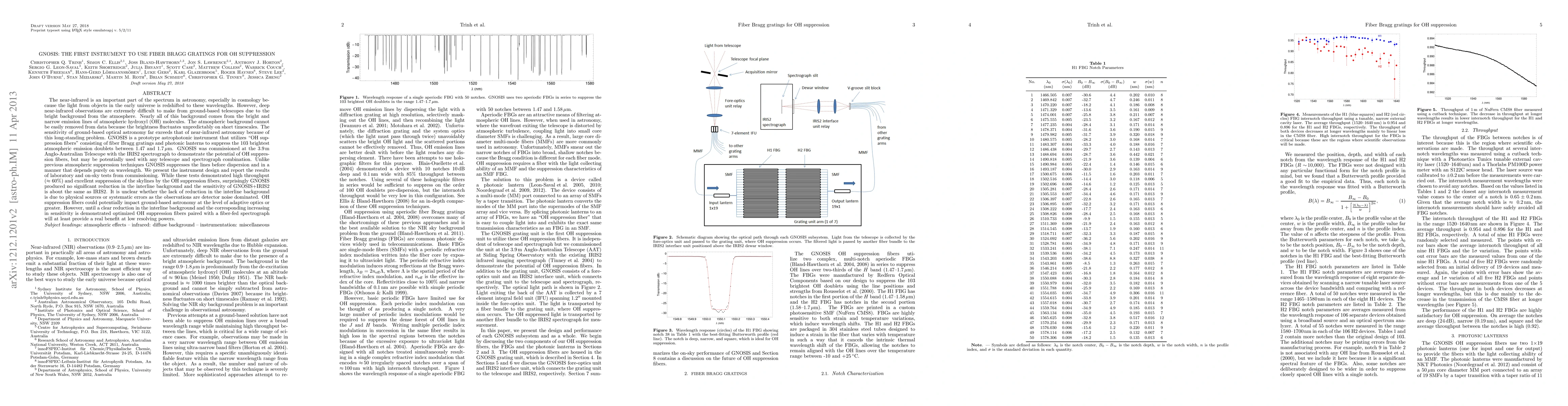 GNOSIS is an astrophotonic instrument using fibre Bragg gratings for OH suppression, achieving high throughput and effective skyline suppression. However, it did not significantly reduce interline background, limiting its immediate benefits to low resolving powers.