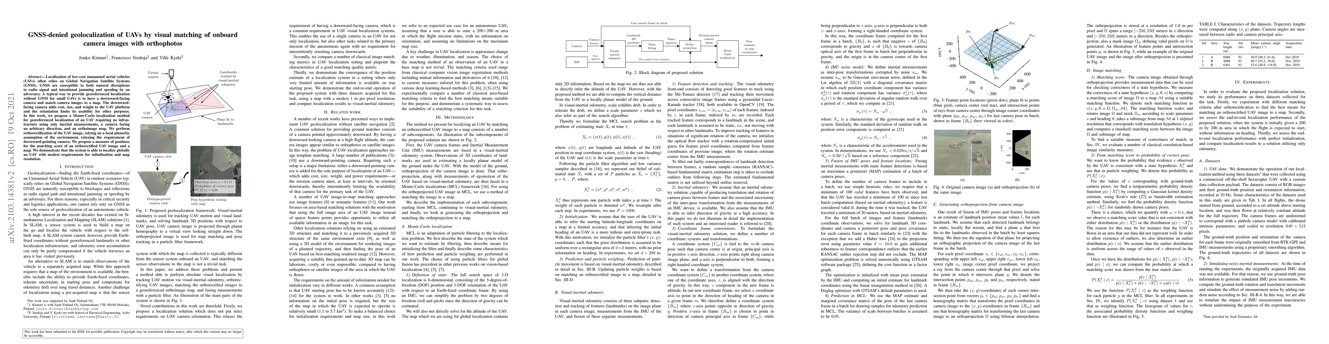 A new method for localizing UAVs without GPS using visual matching of camera images with orthophotos improves upon existing systems by requiring less infrastructure and allowing cameras to face any direction.