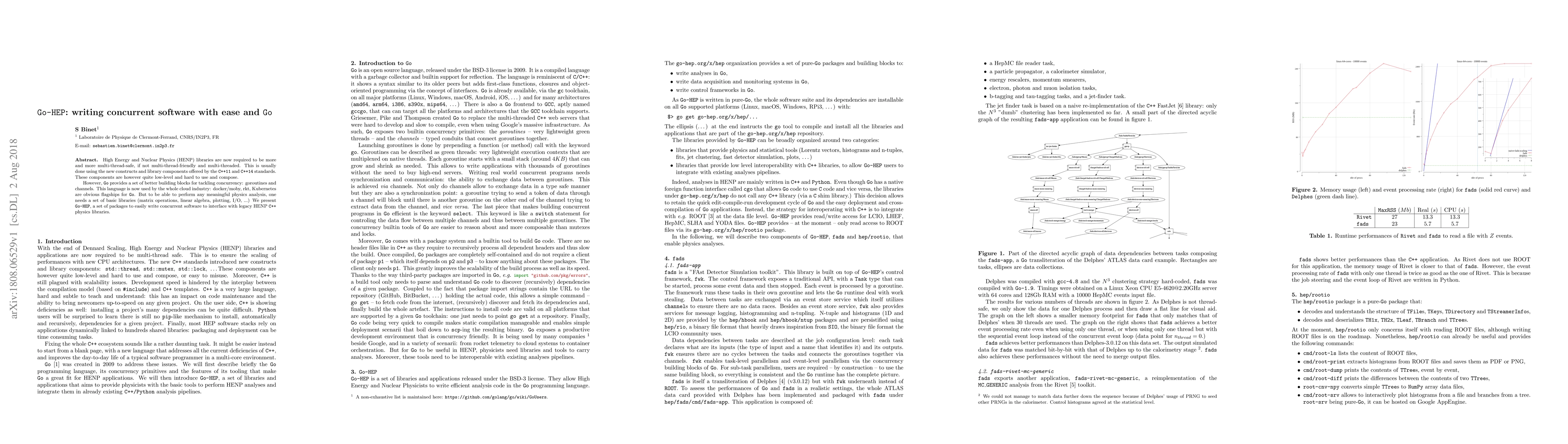 High Energy and Nuclear Physics (HENP) libraries are now required to be more and more multi-thread-safe, if not multi-thread-friendly and multi-threaded. This is usually done using the new constructs and library components offered by the C++11 and C++14 standards. These components are however quite low-level and hard to use and compose. However, Go provides a set of better building blocks for tackling concurrency: goroutines and channels. This language is now used by the whole cloud industry: docker/moby, rkt, Kubernetes are obvious flagships for Go. But to be able to perform any meaningful physics analysis, one needs a set of basic libraries (matrix operations, linear algebra, plotting, I/O, ...) We present Go-HEP, a set of packages to easily write concurrent software to interface with legacy HENP C++ physics libraries.