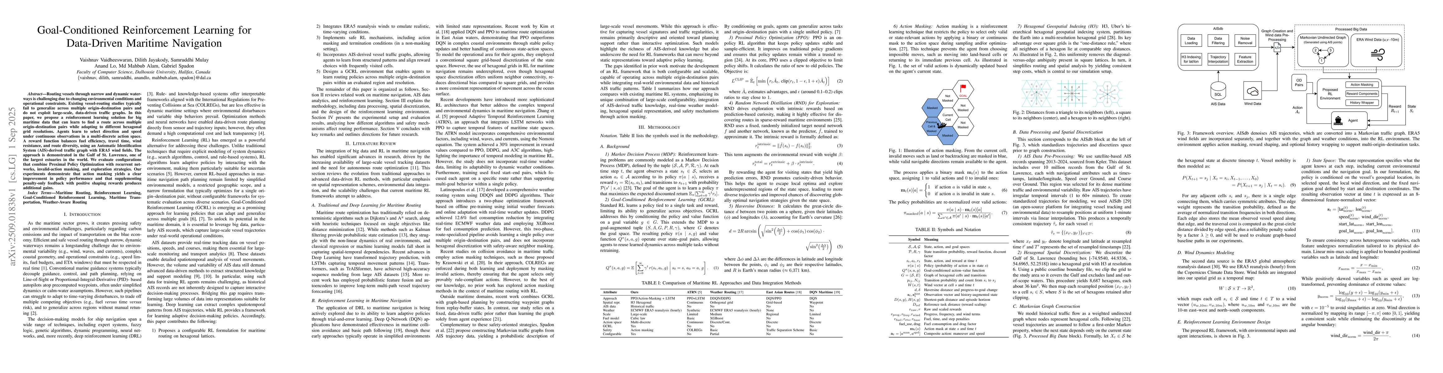 Routing vessels through narrow and dynamic waterways is challenging due to changing environmental conditions and operational constraints. Existing vessel-routing studies typically fail to generalize across multiple origin-destination pairs and do not exploit large-scale, data-driven traffic graphs. In this paper, we propose a reinforcement learning solution for big maritime data that can learn to find a route across multiple origin-destination pairs while adapting to different hexagonal grid resolutions. Agents learn to select direction and speed under continuous observations in a multi-discrete action space. A reward function balances fuel efficiency, travel time, wind resistance, and route diversity, using an Automatic Identification System (AIS)-derived traffic graph with ERA5 wind fields. The approach is demonstrated in the Gulf of St. Lawrence, one of the largest estuaries in the world. We evaluate configurations that combine Proximal Policy Optimization with recurrent networks, invalid-action masking, and exploration strategies. Our experiments demonstrate that action masking yields a clear improvement in policy performance and that supplementing penalty-only feedback with positive shaping rewards produces additional gains.