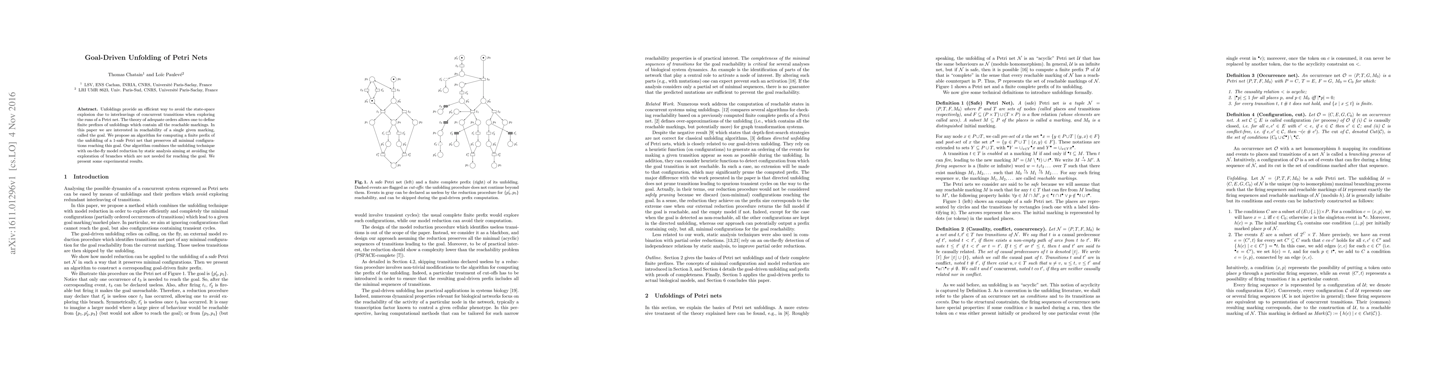 This paper proposes an algorithm for computing a finite prefix of the unfolding of a 1-safe Petri net that preserves all minimal configurations leading to a specified goal marking. The algorithm combines unfolding techniques with on-the-fly model reduction to avoid unnecessary exploration, aiming to efficiently reach the goal.