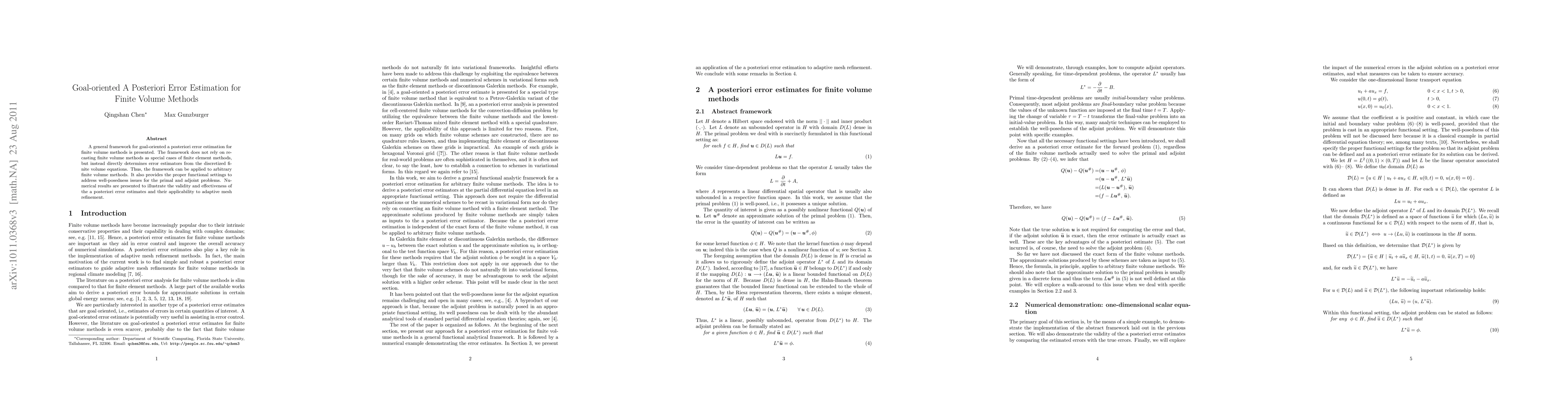 A general framework for goal-oriented a posteriori error estimation for finite volume methods is presented. The framework does not rely on recasting finite volume methods as special cases of finite element methods, but instead directly determines error estimators from the discretized finite volume equations. Thus, the framework can be ap- plied to arbitrary finite volume methods. It also provides the proper functional settings to address well-posedness issues for the primal and adjoint problems. Numerical results are presented to illustrate the validity and effectiveness of the a posteriori error estimates and their applicability to adaptive mesh refinement.