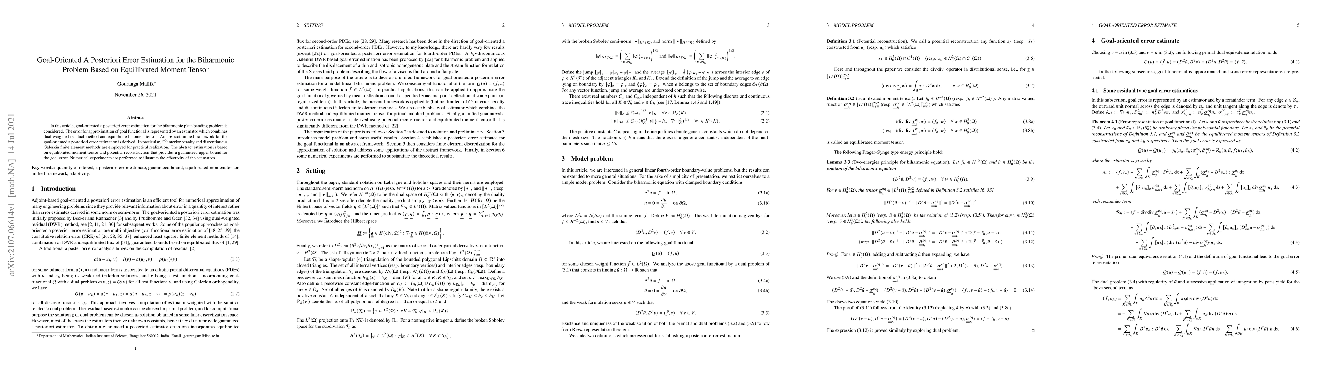 In this article, goal-oriented a posteriori error estimation for the biharmonic plate bending problem is considered. The error for approximation of goal functional is represented by an estimator which combines dual-weighted residual method and equilibrated moment tensor. An abstract unified framework for the goal-oriented a posteriori error estimation is derived. In particular, $C^0$ interior penalty and discontinuous Galerkin finite element methods are employed for practical realization. The abstract estimation is based on equilibrated moment tensor and potential reconstruction that provides a guaranteed upper bound for the goal error. Numerical experiments are performed to illustrate the effectivity of the estimators.