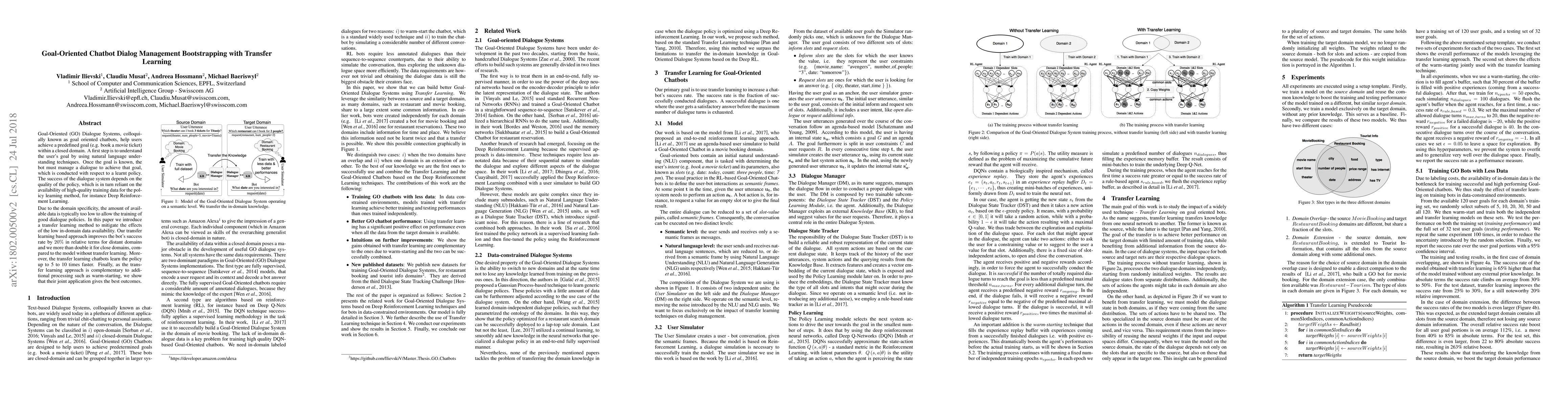 This paper proposes a transfer learning method to enhance goal-oriented chatbots by improving dialogue policy learning, especially in low-data domains. The approach boosts the chatbot's success rate by 20% for distant domains and more than doubles it for close domains, while also significantly speeding up the learning process.