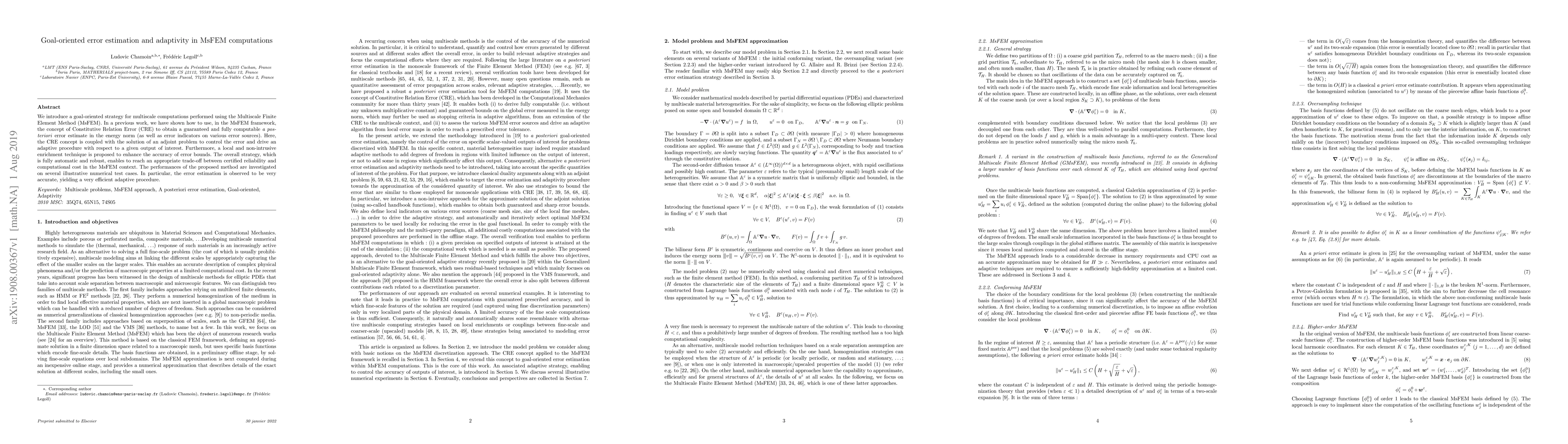 This paper presents a goal-oriented error estimation and adaptivity strategy for Multiscale Finite Element Method (MsFEM) computations, leveraging the concept of Constitutive Relation Error (CRE) coupled with an adjoint problem to control error and drive adaptive refinement based on output of interest. The method achieves a reliable trade-off between accuracy and computational cost, demonstrated through effective adaptive procedures in numerical tests.