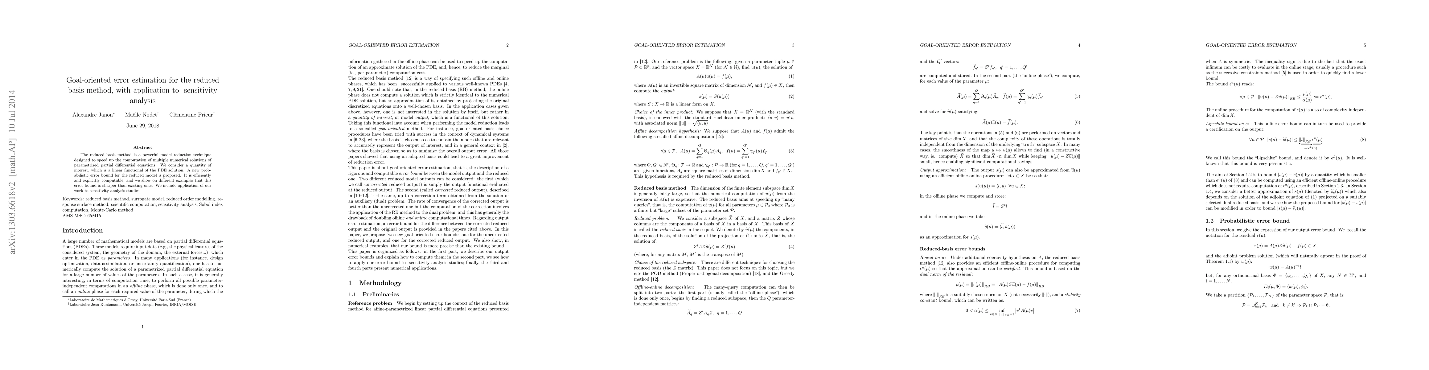 This paper proposes a new probabilistic error bound for the reduced basis method, demonstrating its efficiency and sharper accuracy compared to existing bounds. The method is applied to sensitivity analysis of parametrized partial differential equations, enhancing computational speed and accuracy.