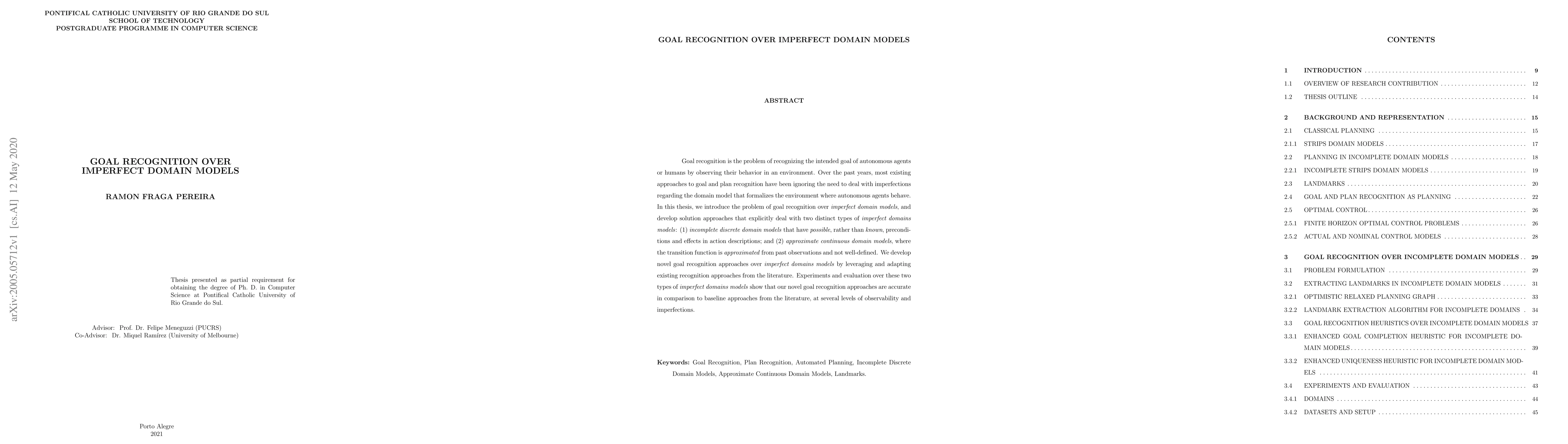 Goal recognition is the problem of recognizing the intended goal of autonomous agents or humans by observing their behavior in an environment. Over the past years, most existing approaches to goal and plan recognition have been ignoring the need to deal with imperfections regarding the domain model that formalizes the environment where autonomous agents behave. In this thesis, we introduce the problem of goal recognition over imperfect domain models, and develop solution approaches that explicitly deal with two distinct types of imperfect domains models: (1) incomplete discrete domain models that have possible, rather than known, preconditions and effects in action descriptions; and (2) approximate continuous domain models, where the transition function is approximated from past observations and not well-defined. We develop novel goal recognition approaches over imperfect domains models by leveraging and adapting existing recognition approaches from the literature. Experiments and evaluation over these two types of imperfect domains models show that our novel goal recognition approaches are accurate in comparison to baseline approaches from the literature, at several levels of observability and imperfections.