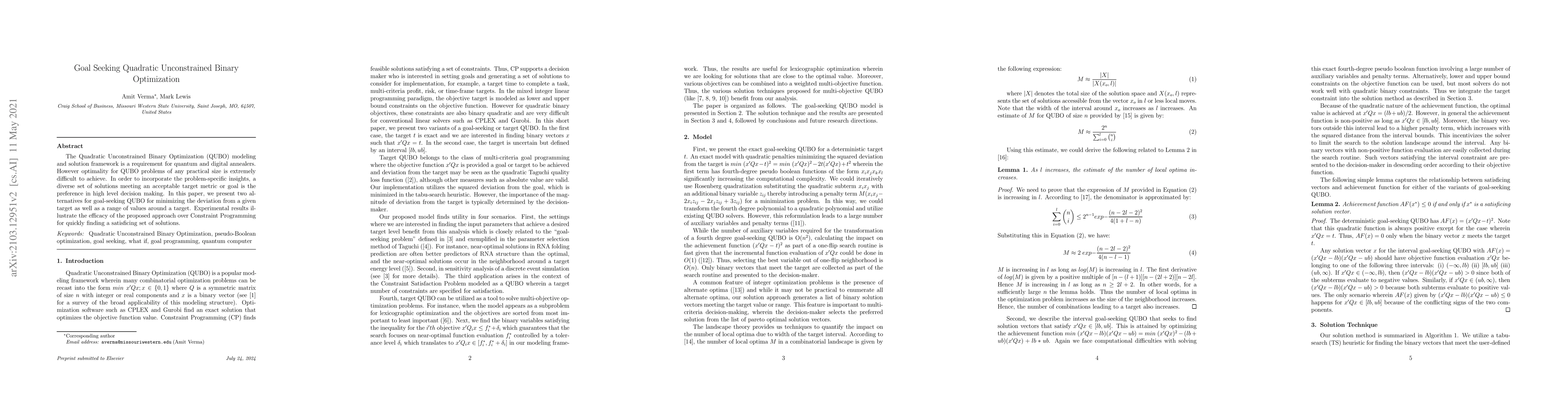 The Quadratic Unconstrained Binary Optimization (QUBO) modeling and solution framework is a requirement for quantum and digital annealers. However optimality for QUBO problems of any practical size is extremely difficult to achieve. In order to incorporate the problem-specific insights, a diverse set of solutions meeting an acceptable target metric or goal is the preference in high level decision making. In this paper, we present two alternatives for goal-seeking QUBO for minimizing the deviation from a given target as well as a range of values around a target. Experimental results illustrate the efficacy of the proposed approach over Constraint Programming for quickly finding a satisficing set of solutions.