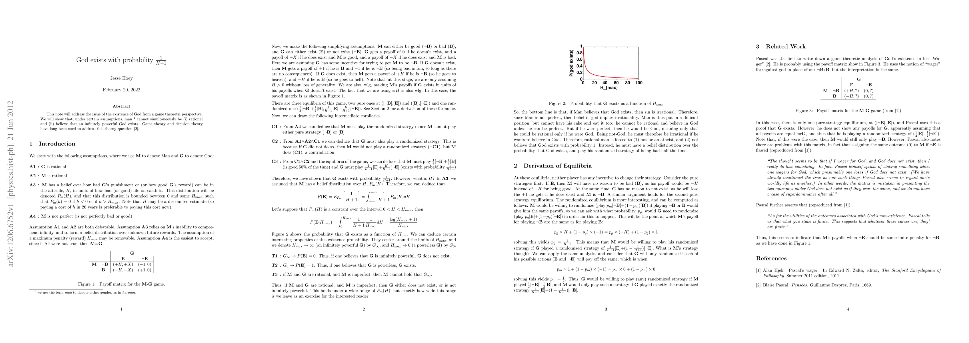 This note will address the issue of the existence of God from a game theoretic perspective. We will show that, under certain assumptions, man cannot simultaneously be (i) rational and (ii) believe that an infinitely powerful God exists. Game theory and decision theory have long been used to address this thorny question.