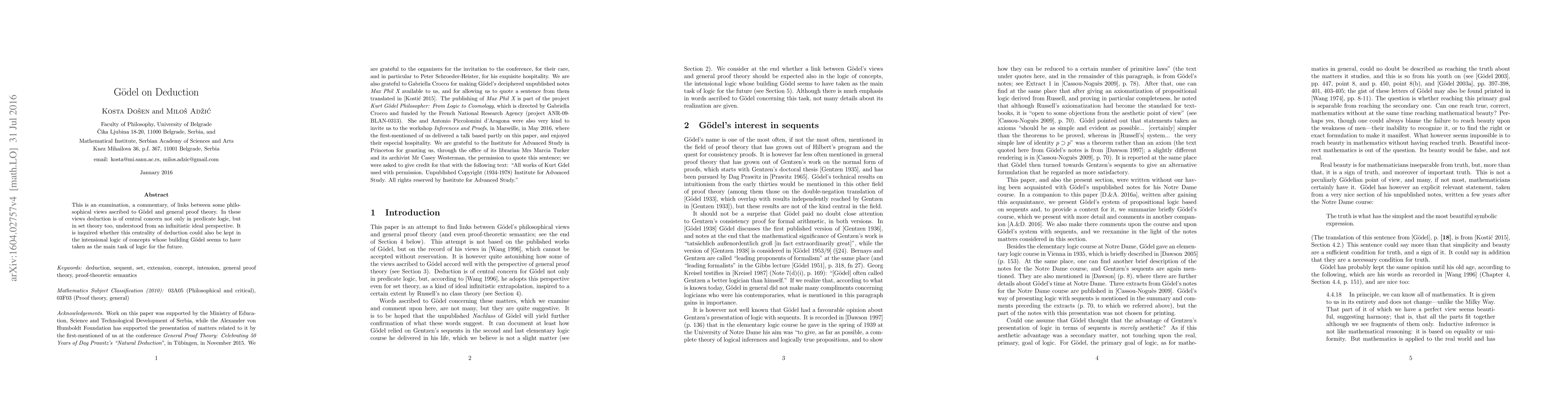 This is an examination, a commentary, of links between some philosophical views ascribed to G\"odel and general proof theory. In these views deduction is of central concern not only in predicate logic, but in set theory too, understood from an infinitistic ideal perspective. It is inquired whether this centrality of deduction could also be kept in the intensional logic of concepts whose building G\"odel seems to have taken as the main task of logic for the future.