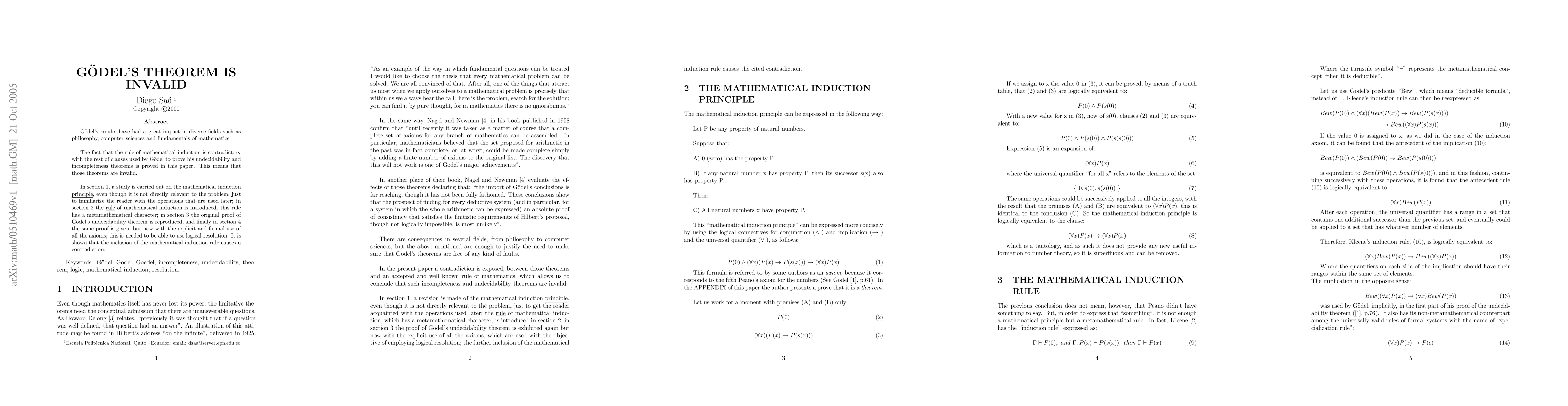 Goedel's results have had a great impact in diverse fields such as philosophy, computer sciences and fundamentals of mathematics. The fact that the rule of mathematical induction is contradictory with the rest of clauses used by Goedel to prove his undecidability and incompleteness theorems is proved in this paper. This means that those theorems are invalid.