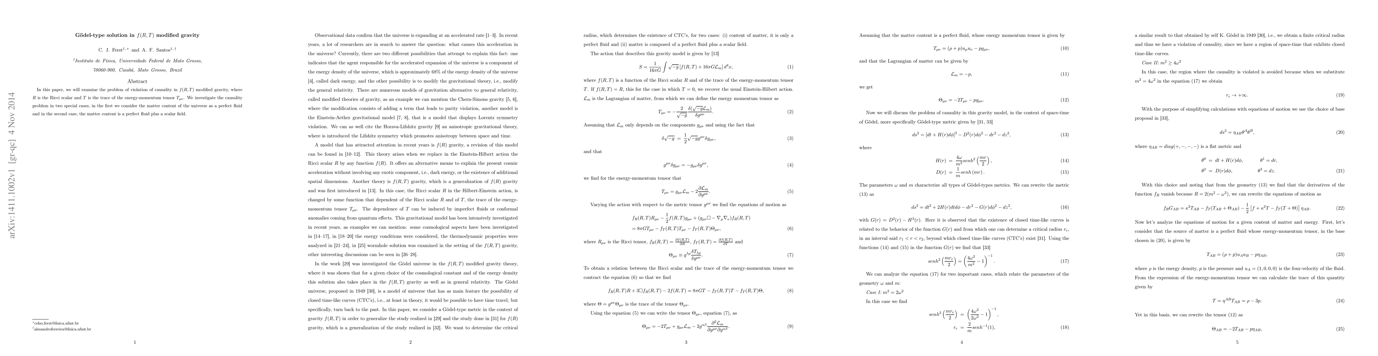 This paper investigates causality violations in $f(R,T)$ modified gravity, examining two scenarios: one with a perfect fluid and another with a perfect fluid plus a scalar field. The study aims to understand the implications of these modifications on the fundamental principles of causality.