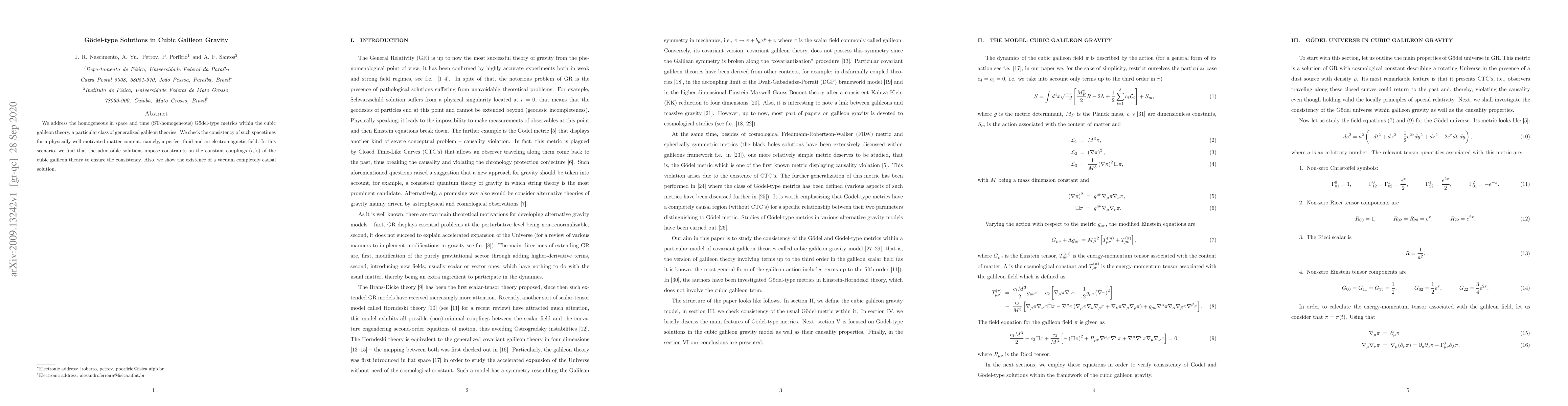 This paper investigates ST-homogeneous Gödel-type metrics in cubic galileon gravity, finding that the solutions impose constraints on the theory's coupling constants for consistency with a perfect fluid and electromagnetic field. It also reveals a vacuum solution that maintains causal structure.