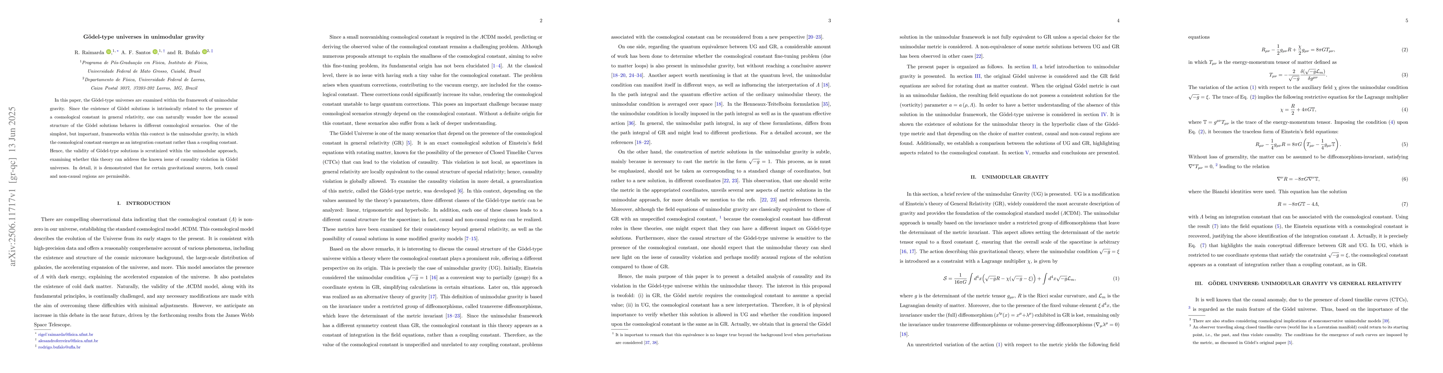 In this paper, the G\"{o}del-type universes are examined within the framework of unimodular gravity. Since the existence of G\"{o}del solutions is intrinsically related to the presence of a cosmological constant in general relativity, one can naturally wonder how the acausal structure of the G\"{o}del solutions behaves in different cosmological scenarios. One of the simplest, but important, frameworks within this context is the unimodular gravity, in which the cosmological constant emerges as an integration constant rather than a coupling constant. Hence, the validity of G\"{o}del-type solutions is scrutinized within the unimodular approach, examining whether this theory can address the known issue of causality violation in G\"{o}del universes. In detail, it is demonstrated that for certain gravitational sources, both causal and non-causal regions are permissible.