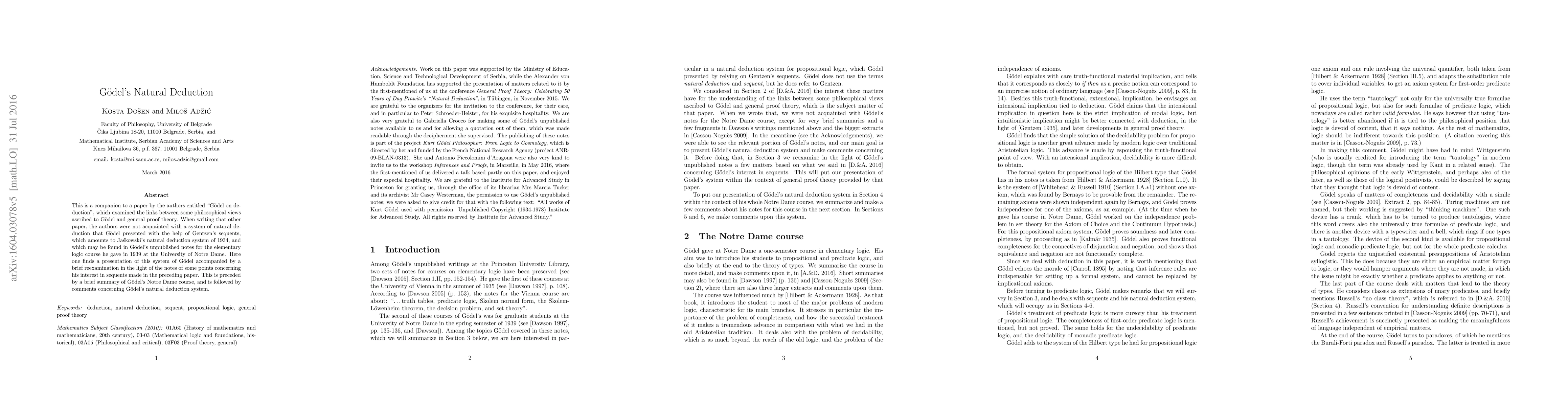 Summary: The paper presents Gödel's previously unpublished natural deduction system, developed with Gentzen's sequents, and examines its philosophical implications in light of Gödel's 1939 Notre Dame course notes. It follows a reexamination of Gödel's interest in sequents and comments on his natural deduction system.