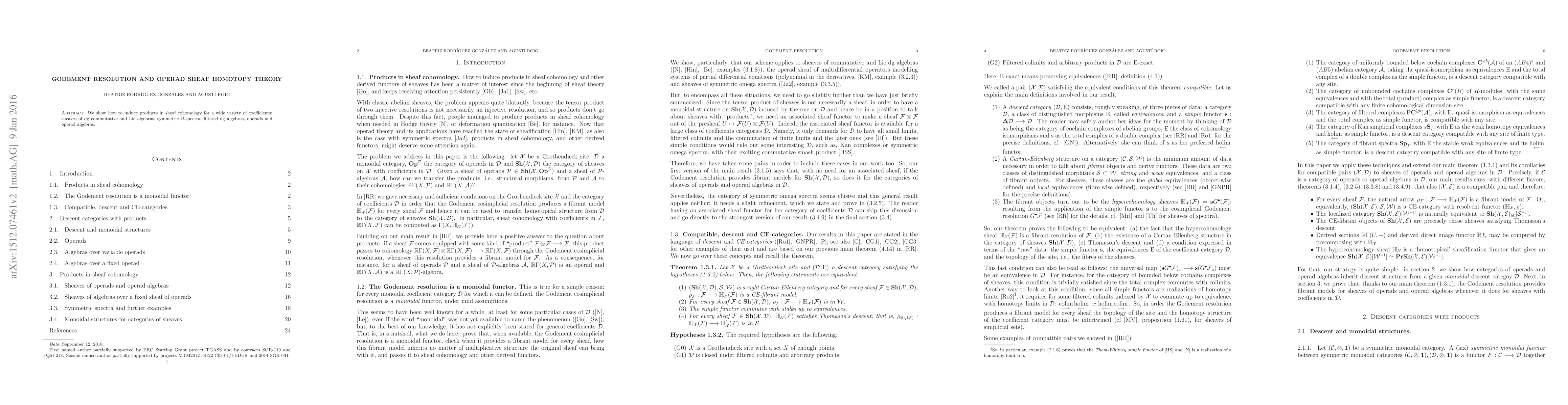 Summary: This paper demonstrates the construction of Godement resolutions to induce products in sheaf cohomology across diverse coefficient types, including dg commutative and Lie algebras, symmetric Omega-spectra, filtered dg algebras, operads, and operad algebras.