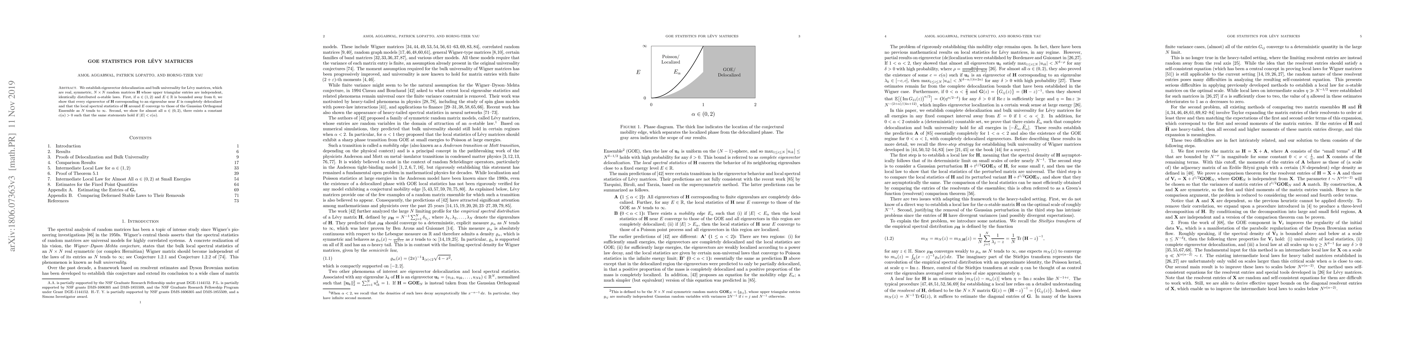 In this paper we establish eigenvector delocalization and bulk universality for L\'{e}vy matrices, which are real, symmetric, $N \times N$ random matrices $\textbf{H}$ whose upper triangular entries are independent, identically distributed $\alpha$-stable laws. First, if $\alpha \in (1, 2)$ and $E \in \mathbb{R}$ is any energy bounded away from $0$, we show that every eigenvector of $\textbf{H}$ corresponding to an eigenvalue near $E$ is completely delocalized and that the local spectral statistics of $\textbf{H}$ around $E$ converge to those of the Gaussian Orthogonal Ensemble (GOE) as $N$ tends to $\infty$. Second, we show for almost all $\alpha \in (0, 2)$, there exists a constant $c(\alpha) > 0$ such that the same statements hold if $|E| < c (\alpha)$.