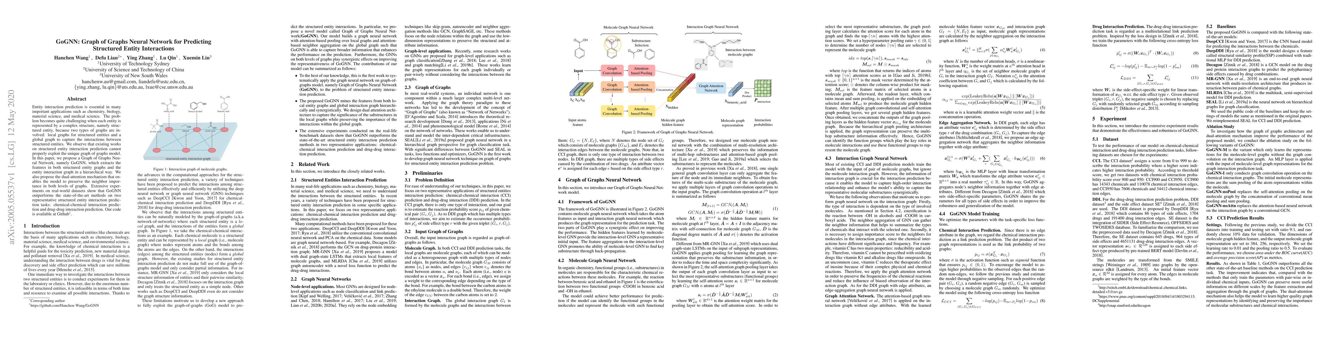 GoGNN is a novel Graph of Graphs Neural Network designed to predict interactions between structured entities, leveraging both local and global graph representations. It employs a dual-attention mechanism to enhance feature extraction and outperforms existing methods in chemical and drug interaction prediction tasks.