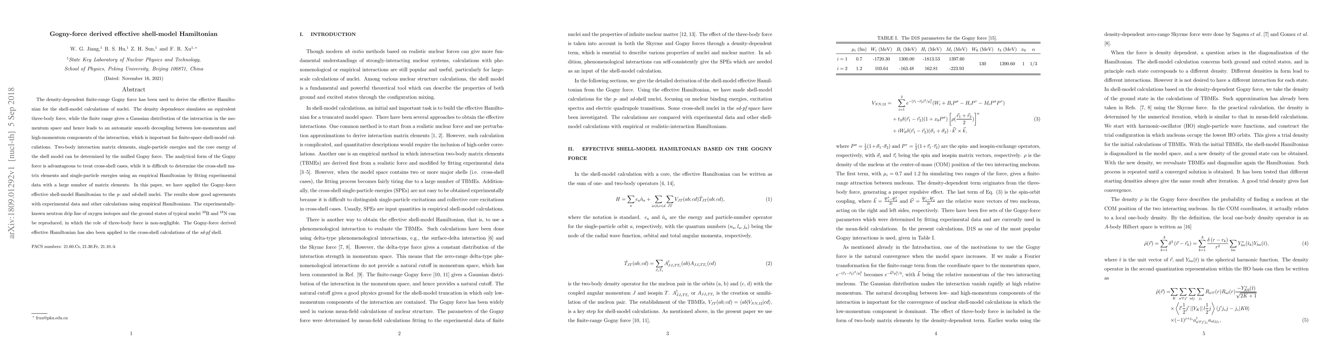 This paper derives an effective shell-model Hamiltonian using the density-dependent finite-range Gogny force, which simulates three-body interactions and provides smooth decoupling in momentum space. The Gogny force's analytical form facilitates cross-shell calculations, and its application to p- and sd-shell nuclei shows good agreement with experimental data, highlighting the significant role of three-body forces.