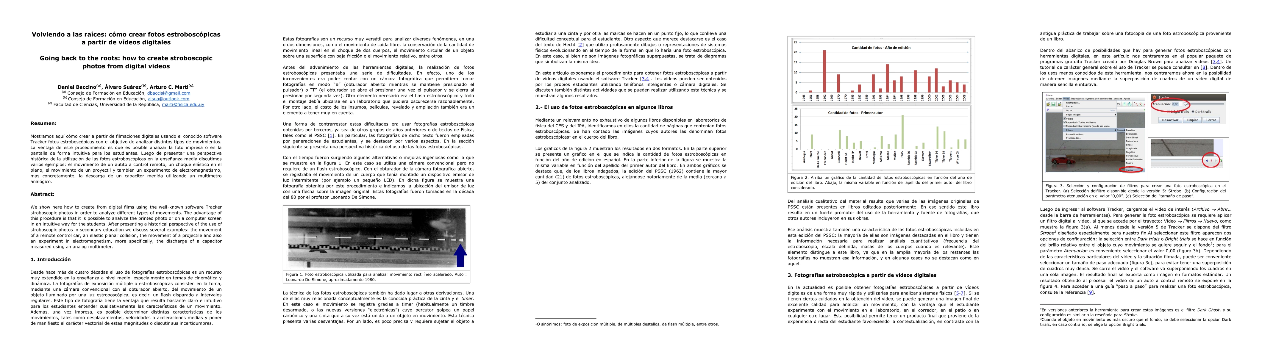 We show here how to create from digital films using the well-known software Tracker stroboscopic photos in order to analyze different types of movements. The advantage of this procedure is that it is possible to analyze the printed photo or on a computer screen in an intuitive way for the students. After presenting a historical perspective of the use of stroboscopic photos in secondary education we discuss several examples: the movement of a remote control car, an elastic planar collision, the movement of a projectile and also an experiment in electromagnetism, more specifically, the discharge of a capacitor measured using an analog multimeter.