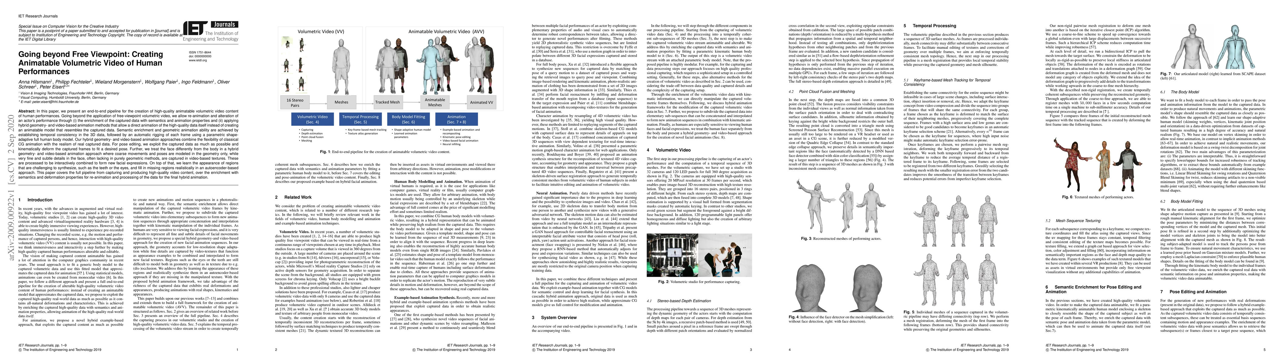 This paper proposes an end-to-end pipeline for creating animatable volumetric video of human performances, enhancing captured data with semantics and animation properties, and employing hybrid geometry- and video-based methods for direct animation, achieving realistic and flexible pose editing and facial expression synthesis.