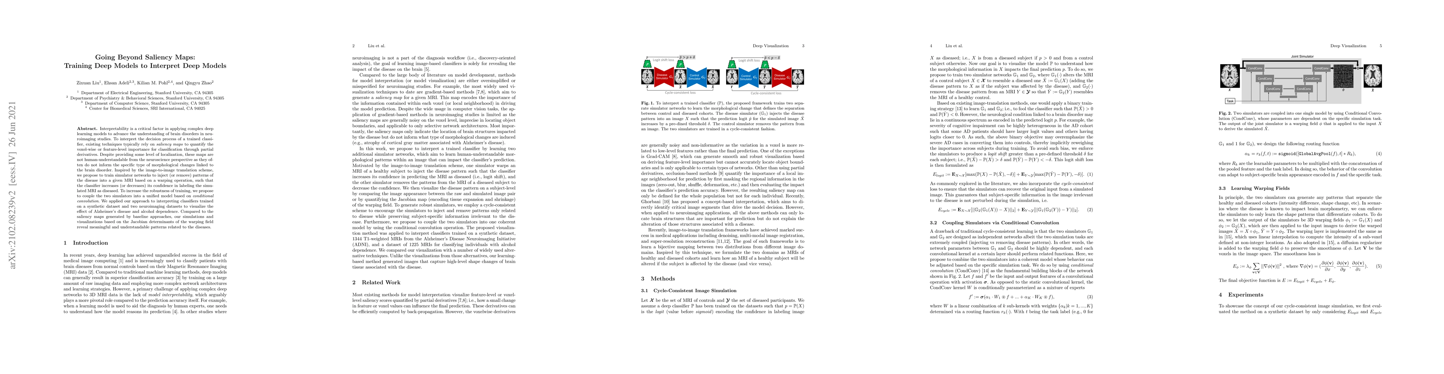 This paper proposes a novel approach to interpret deep learning models by training simulator networks to manipulate images to reflect disease patterns, offering more meaningful insights than traditional saliency maps. The method visualizes the effects of Alzheimer's disease and alcohol use disorder, providing clearer, neuroscience-relevant interpretations.