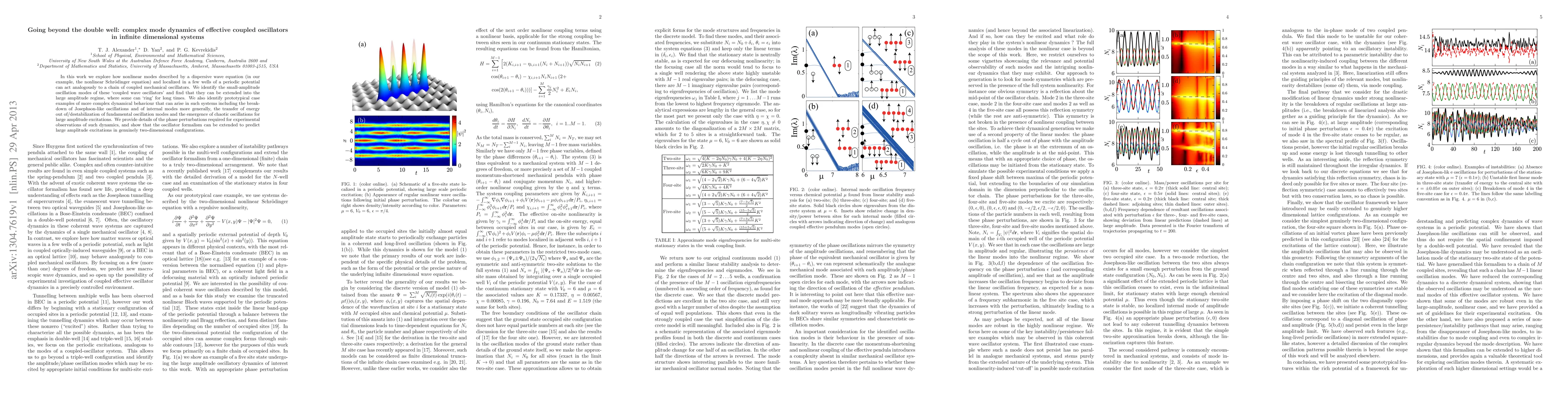 In this work we explore how nonlinear modes described by a dispersive wave equation (in our example, the nonlinear Schrodinger equation) and localized in a few wells of a periodic potential can act analogously to a chain of coupled mechanical oscillators. We identify the small-amplitude oscillation modes of these `coupled wave oscillators' and find that they can be extended into the large amplitude regime, where some can `ring' for long times. We also identify prototypical case examples of more complex dynamical behaviour that can arise in such systems beyond the double well paradigm, including the breakdown of Josephson-like oscillations and of internal modes more generally, the transfer of energy out of/destabilization of fundamental oscillation modes and the emergence of chaotic oscillations for large amplitude excitations. We provide details of the phase perturbations required for experimental observations of such dynamics, and show that the oscillator formalism can be extended to predict large amplitude excitations in genuinely two-dimensional configurations.