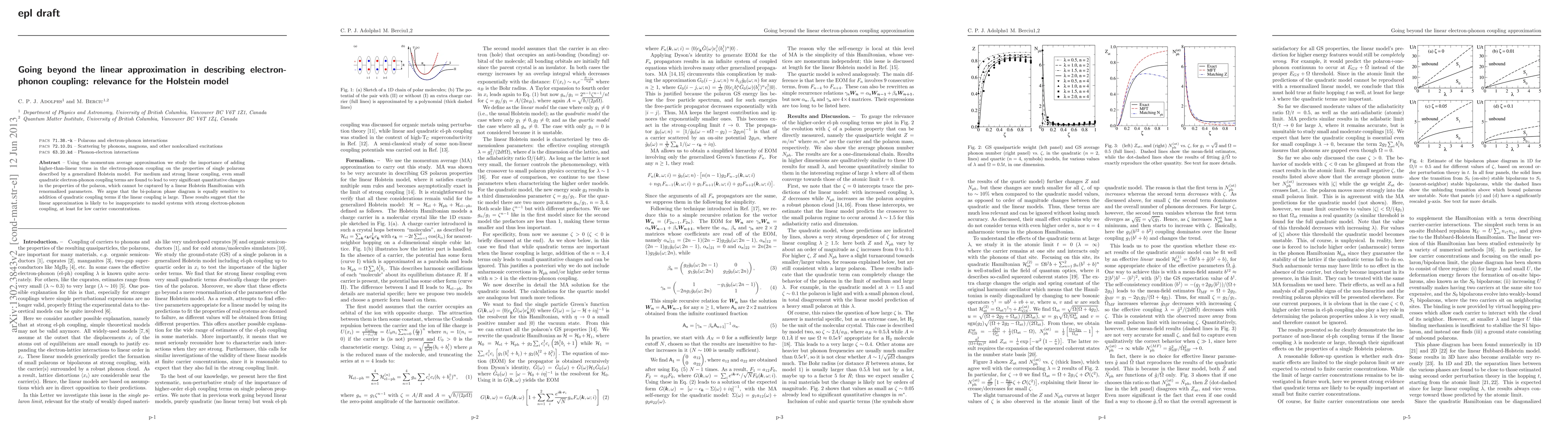 Using the momentum average approximation we study the importance of adding higher-than-linear terms in the electron-phonon coupling on the properties of single polarons described by a generalized Holstein model. For medium and strong linear coupling, even small quadratic electron-phonon coupling terms are found to lead to very significant quantitative changes in the properties of the polaron, which cannot be captured by a linear Holstein Hamiltonian with renormalized parameters. We argue that the bi-polaron phase diagram is equally sensitive to addition of quadratic coupling terms if the linear coupling is large. These results suggest that the linear approximation is likely to be inappropriate to model systems with strong electron-phonon coupling, at least for low carrier concentrations.