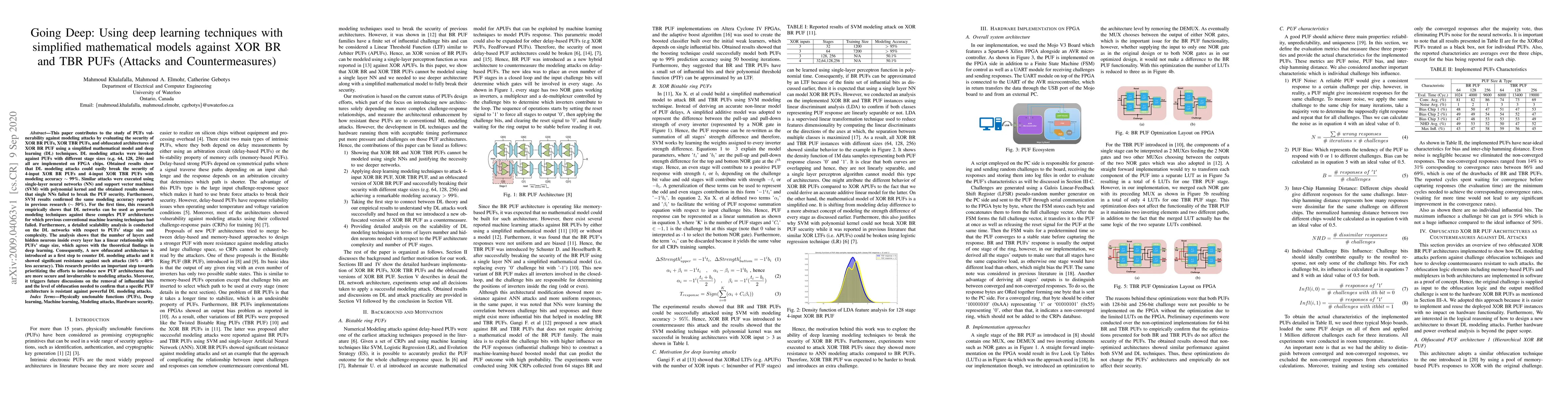 This paper demonstrates that deep learning techniques can effectively break the security of 4-input XOR BR and TBR PUFs, achieving modeling accuracy of nearly 99%, while conventional machine learning methods failed. It also introduces an obfuscated architecture that shows significant resistance against these deep learning attacks.