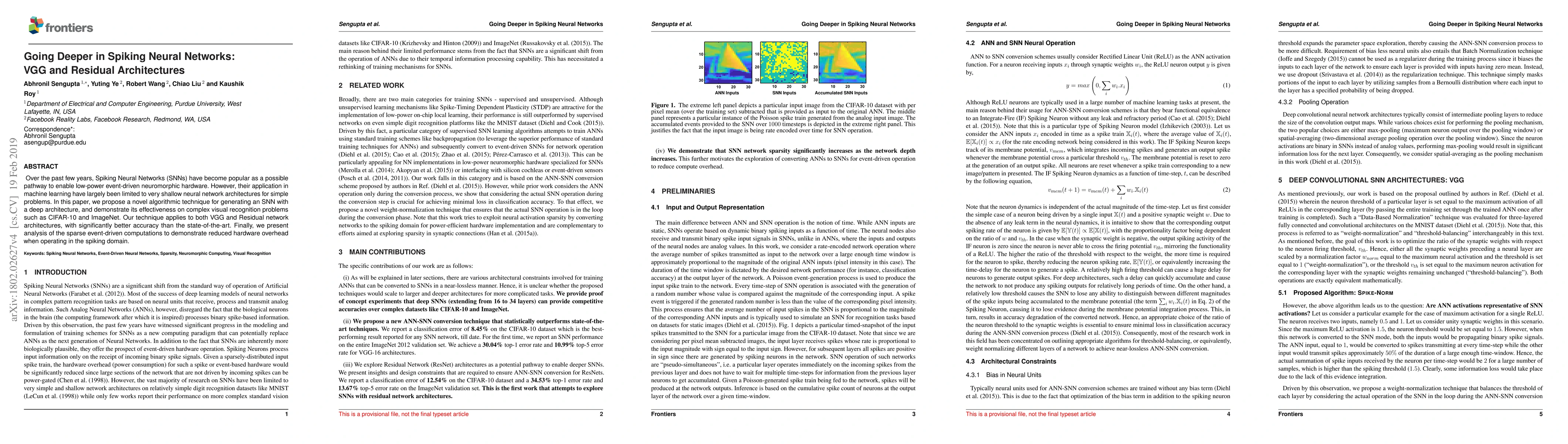 This paper introduces a novel algorithmic technique for constructing deep Spiking Neural Networks (SNNs) that achieves high accuracy on complex visual recognition tasks like CIFAR-10 and ImageNet, outperforming state-of-the-art methods. The technique is applicable to both VGG and Residual network architectures, demonstrating reduced hardware overhead in the spiking domain.