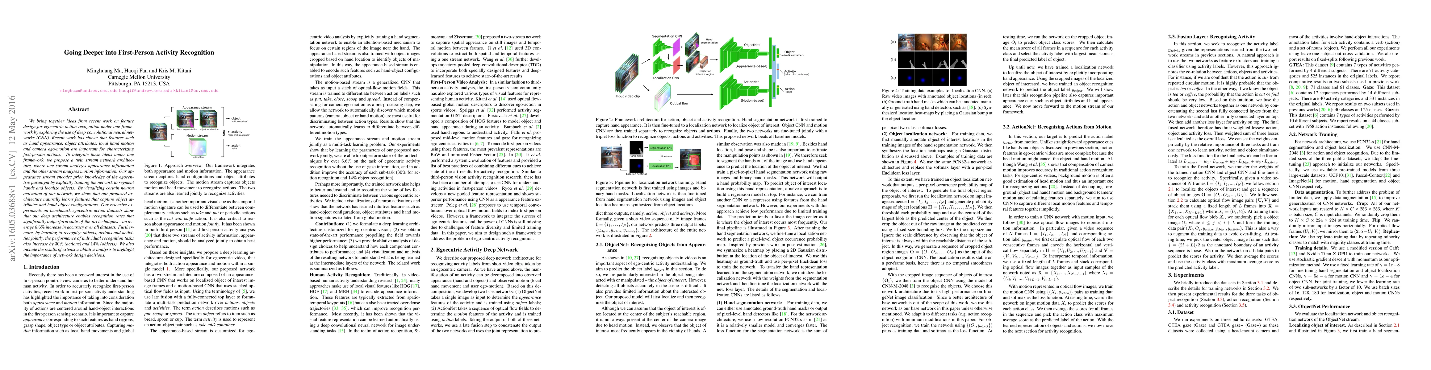 This paper proposes a twin stream deep convolutional neural network architecture for first-person activity recognition, integrating appearance and motion features. The approach significantly outperforms state-of-the-art methods, achieving a $6.6\%$ accuracy increase, and also enhances individual object and action recognition by $30\%$ and $14\%$ respectively.