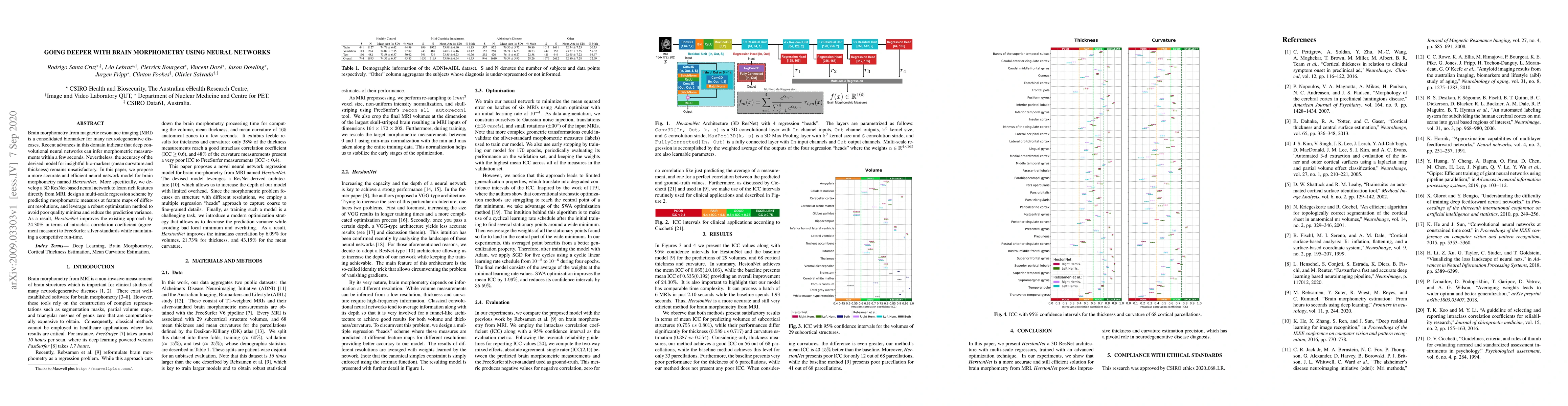 This paper proposes HerstonNet, a 3D ResNet-based neural network for brain morphometry from MRI, which employs a multi-scale regression scheme and robust optimization to achieve a 24.30% improvement in accuracy compared to FreeSurfer, while maintaining efficient runtime.