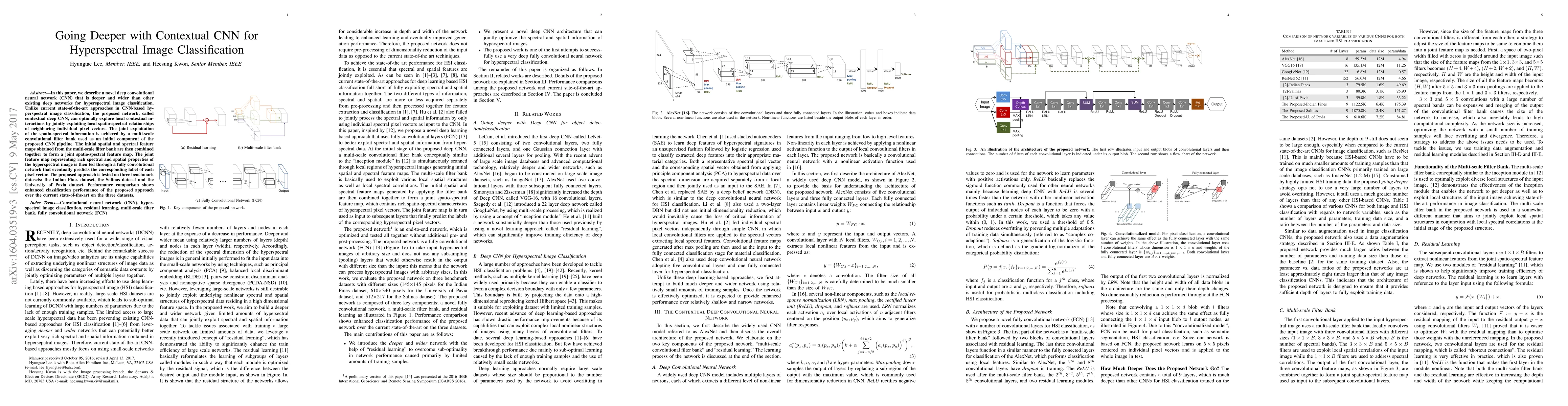 This paper introduces a novel deeper and wider contextual deep CNN for hyperspectral image classification, leveraging multi-scale convolutional filters to optimally explore local contextual interactions and spatio-spectral relationships. The proposed method outperforms current state-of-the-art approaches on three benchmark datasets.