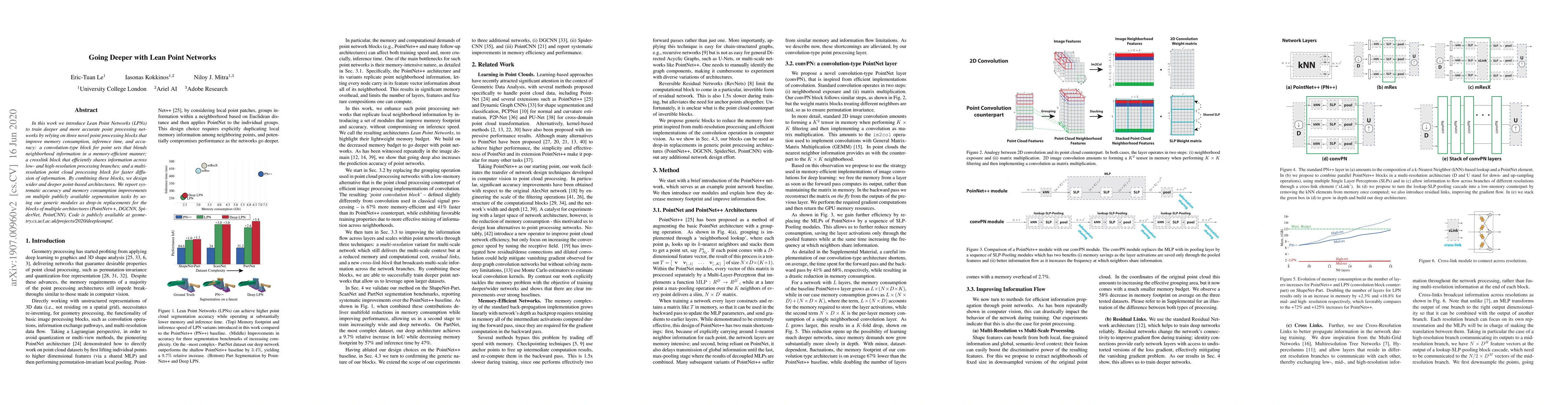 This paper introduces Lean Point Networks (LPNs) that utilize three innovative blocks to enhance memory efficiency, inference speed, and accuracy in point processing networks. These blocks include a convolution-type block, a crosslink block, and a multiresolution processing block, enabling the creation of deeper and more accurate point-based architectures, with demonstrated improvements in segmentation tasks.
