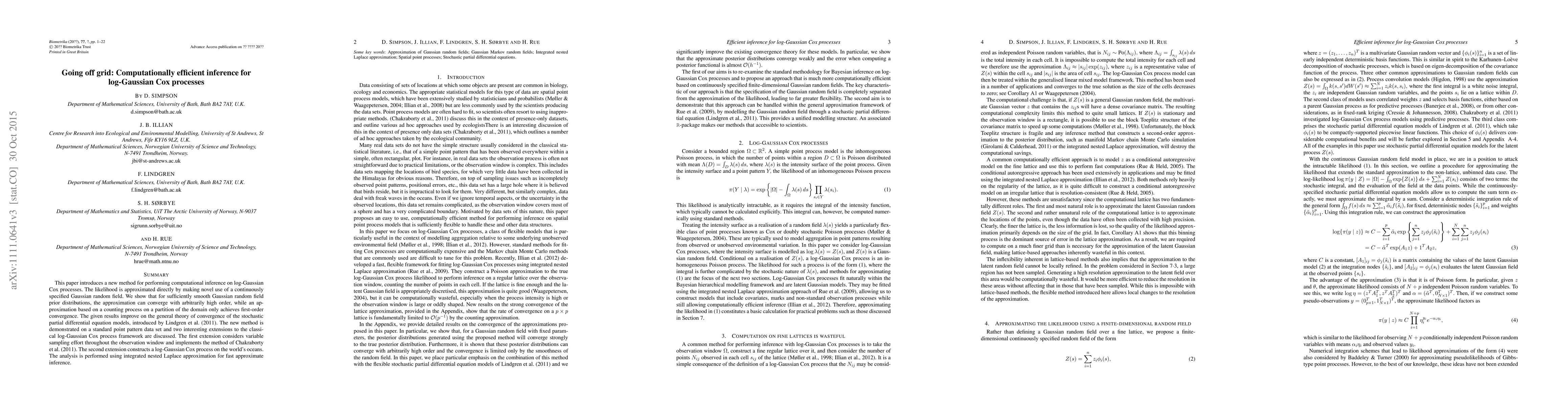 This paper presents a new computationally efficient method for inferring log-Gaussian Cox processes by approximating the likelihood via a continuously specified Gaussian random field, achieving higher-order convergence compared to traditional methods. The method is demonstrated on point pattern data and extended to variable sampling effort and oceanic applications.