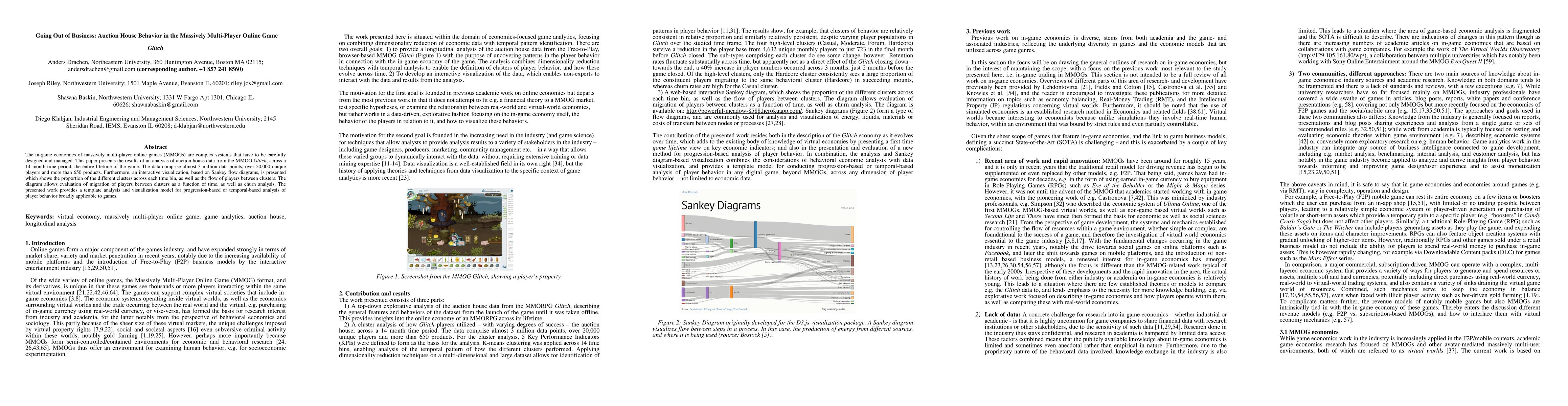 A 14-month analysis of an MMORPG's auction house data reveals insights into player behavior and migration patterns. The study provides a template for analyzing player behavior in games with temporal or progression-based systems.