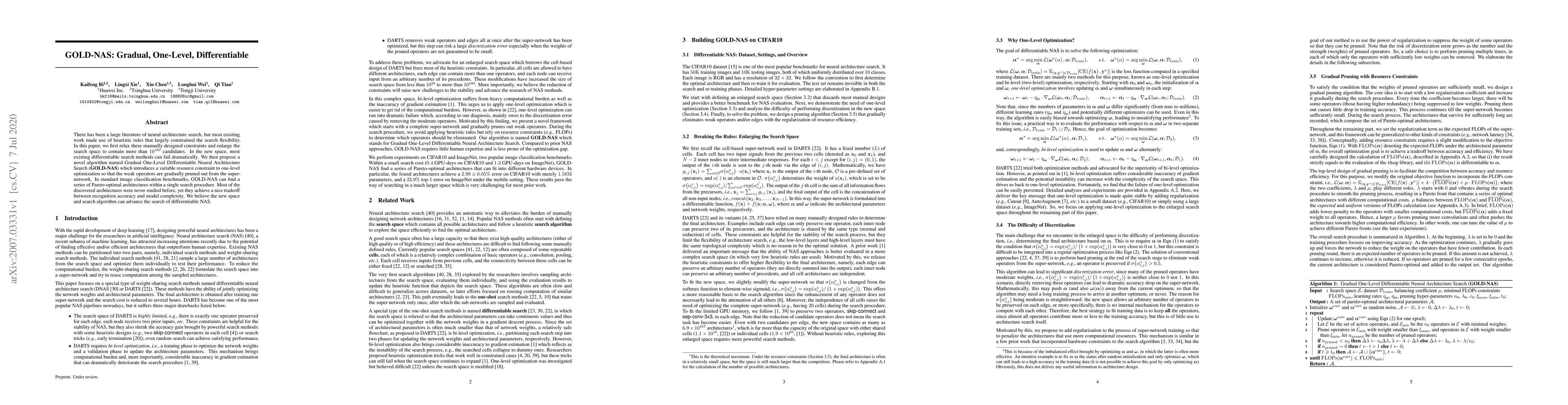 There has been a large literature of neural architecture search, but most existing work made use of heuristic rules that largely constrained the search flexibility. In this paper, we first relax these manually designed constraints and enlarge the search space to contain more than $10^{160}$ candidates. In the new space, most existing differentiable search methods can fail dramatically. We then propose a novel algorithm named Gradual One-Level Differentiable Neural Architecture Search (GOLD-NAS) which introduces a variable resource constraint to one-level optimization so that the weak operators are gradually pruned out from the super-network. In standard image classification benchmarks, GOLD-NAS can find a series of Pareto-optimal architectures within a single search procedure. Most of the discovered architectures were never studied before, yet they achieve a nice tradeoff between recognition accuracy and model complexity. We believe the new space and search algorithm can advance the search of differentiable NAS.