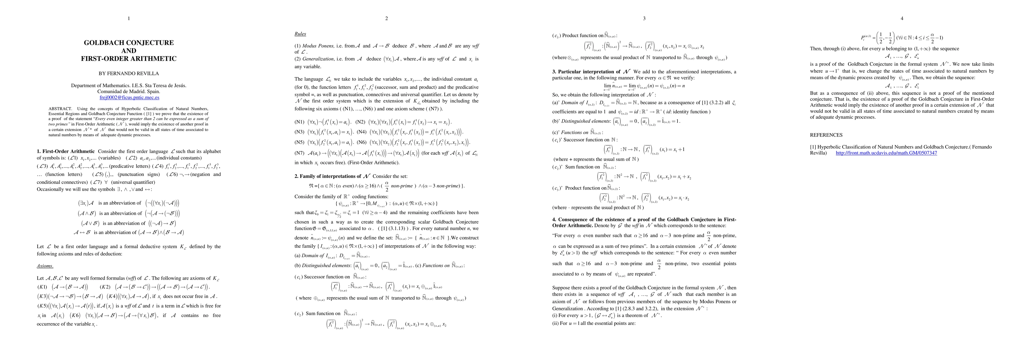 This paper demonstrates that a proof of the Goldbach Conjecture in First-Order Arithmetic would lead to another proof in a broader system, which would not hold under dynamic temporal conditions generated by specific processes. The study employs Hyperbolic Classification and Essential Regions to explore these implications.