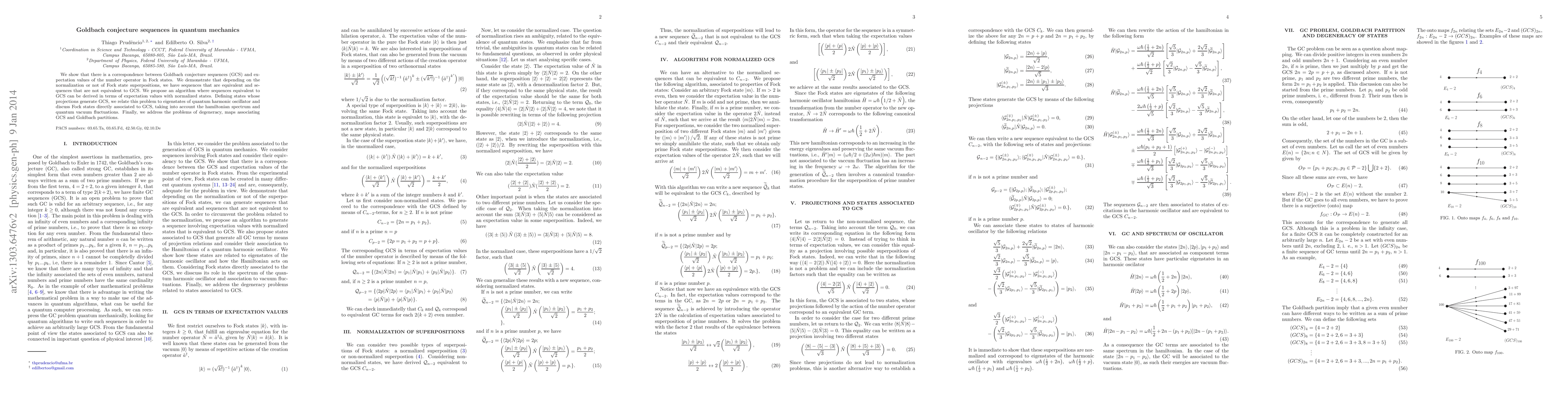 This paper establishes a connection between Goldbach conjecture sequences and quantum mechanics, showing that certain Fock state superpositions correspond to GCS. It proposes an algorithm to derive GCS-equivalent sequences via normalized states and discusses the relation to quantum harmonic oscillator eigenstates and the implications of degeneracy and mappings.