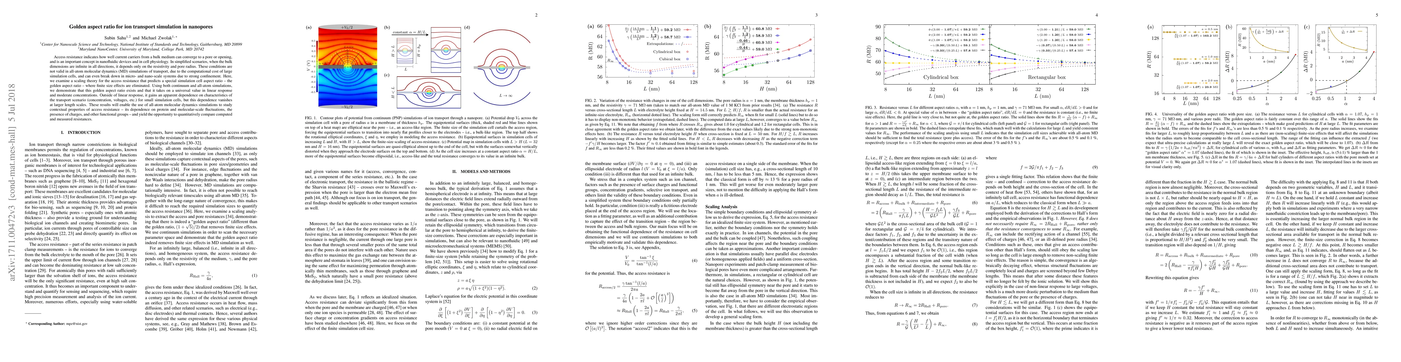 This paper proposes a golden aspect ratio for simulation cells in nanopores to accurately model access resistance in nanofluidic devices and cell physiology, demonstrating that this ratio eliminates finite size effects and enables precise all-atom molecular dynamics simulations. The golden aspect ratio provides a universal value under linear response conditions, facilitating comparisons between computed and measured resistances.