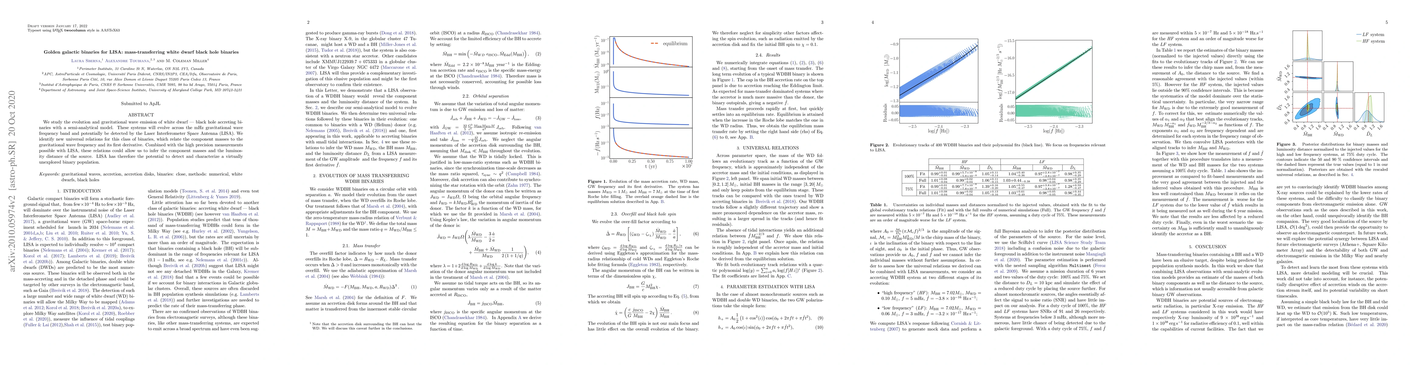 This paper investigates the evolution and gravitational wave emissions of white dwarf-black hole binaries using a semi-analytical model, predicting their detectability by LISA in the mHz frequency band. It establishes new universal relations linking component masses to gravitational wave frequency and its derivative, enabling precise mass and distance measurements.
