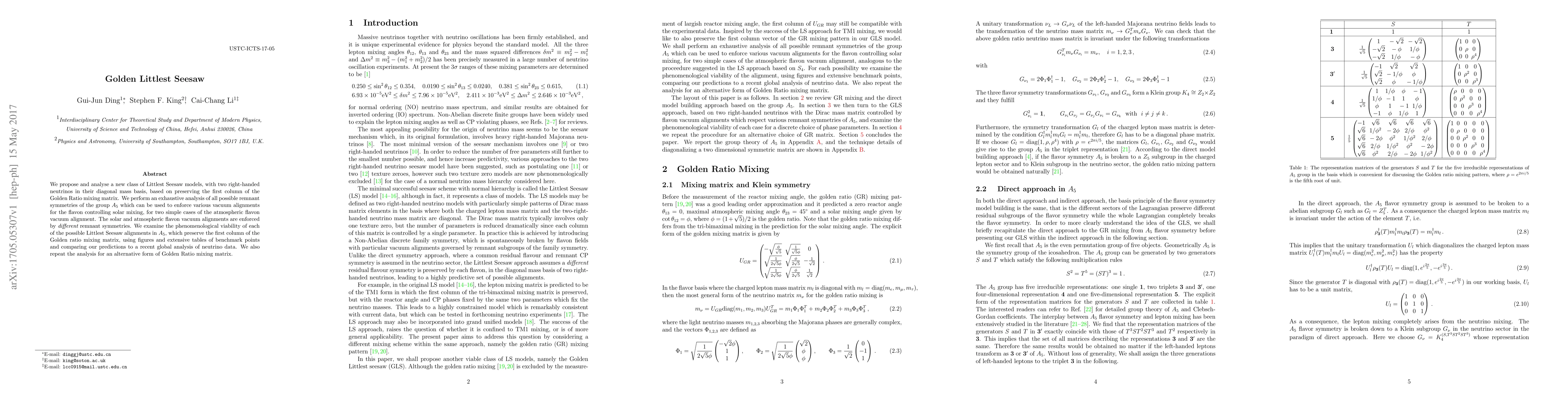 We propose and analyse a new class of Littlest Seesaw models, with two right-handed neutrinos in their diagonal mass basis, based on preserving the first column of the Golden Ratio mixing matrix. We perform an exhaustive analysis of all possible remnant symmetries of the group $A_5$ which can be used to enforce various vacuum alignments for the flavon controlling solar mixing, for two simple cases of the atmospheric flavon vacuum alignment. The solar and atmospheric flavon vacuum alignments are enforced by {\em different} remnant symmetries. We examine the phenomenological viability of each of the possible Littlest Seesaw alignments in $A_5$, which preserve the first column of the Golden ratio mixing matrix, using figures and extensive tables of benchmark points and comparing our predictions to a recent global analysis of neutrino data. We also repeat the analysis for an alternative form of Golden Ratio mixing matrix.