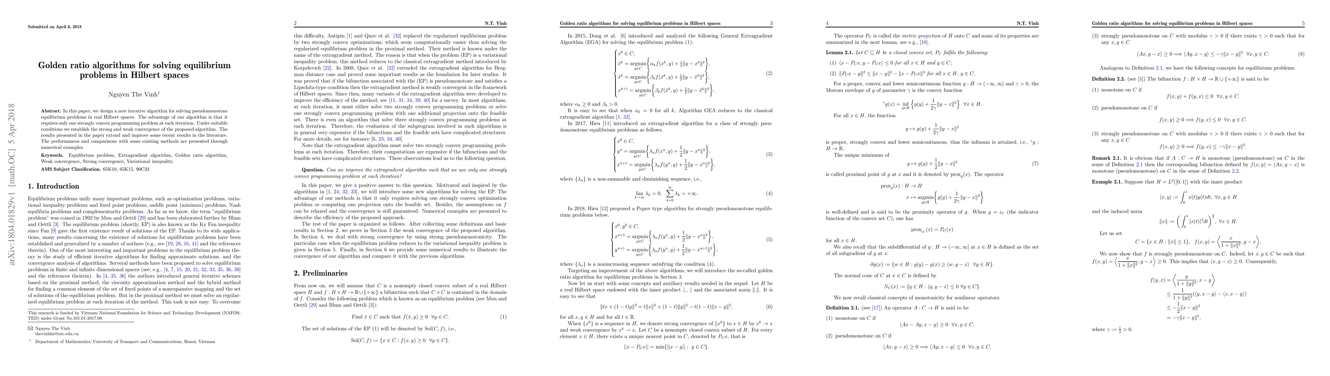This paper introduces a new iterative algorithm using the golden ratio for solving equilibrium problems in Hilbert spaces, requiring only one strongly convex programming problem per iteration. It establishes strong and weak convergence under suitable conditions and extends recent literature, with numerical examples demonstrating its performance.