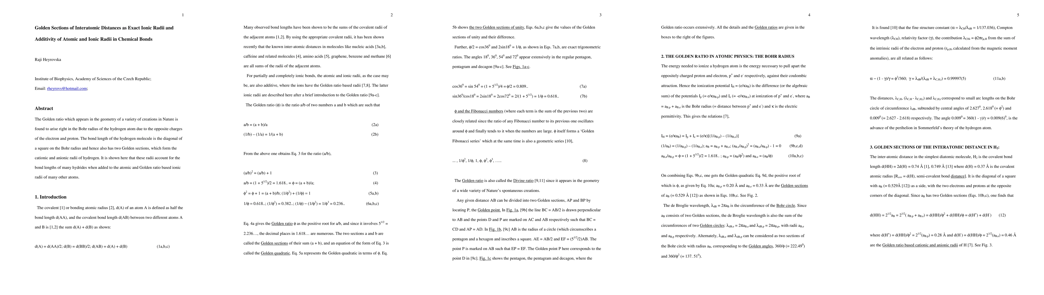 The Golden ratio which appears in the geometry of a variety of creations in Nature is found to arise right in the Bohr radius of the hydrogen atom due to the opposite charges of the electron and proton. The bond length of the hydrogen molecule is the diagonal of a square on the Bohr radius and hence also has two Golden sections, which form the cationic and anionic radii of hydrogen. It is shown here that these radii account for the bond lengths of many hydrides when added to the atomic and Golden ratio based ionic radii of many other atoms.