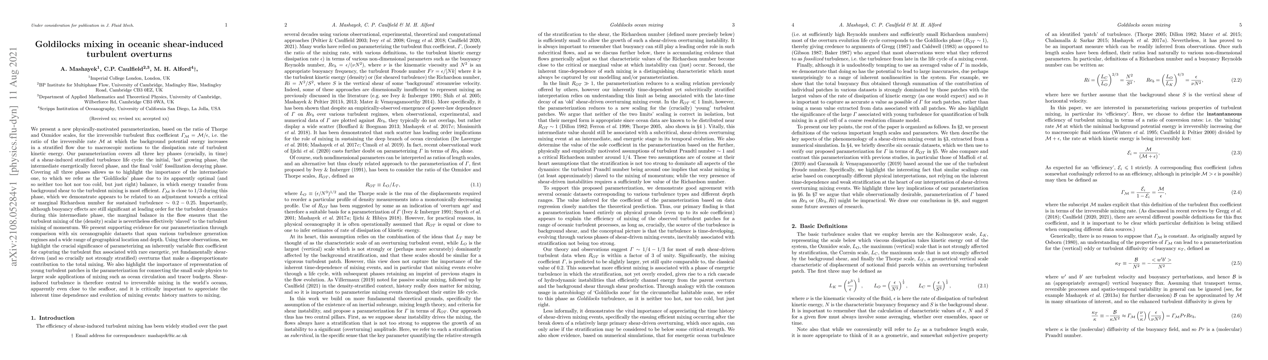 Researchers develop a new parameterization for turbulent mixing in oceanic shear-induced turbulence, revealing an optimal 'Goldilocks' phase where energy transfer is most efficient, related to a critical Richardson number.
