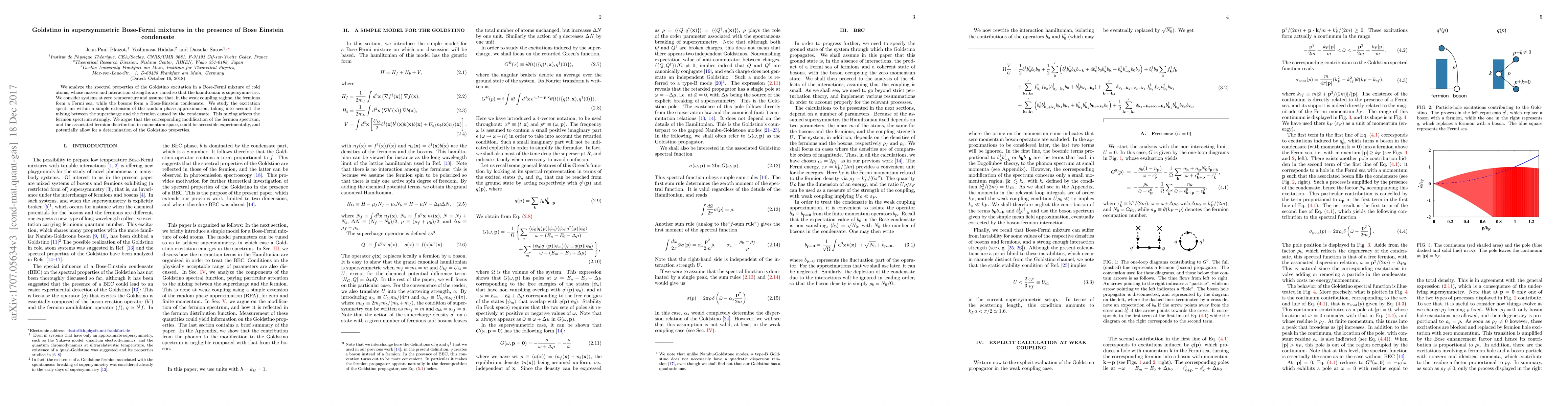 This paper investigates the spectral properties of Goldstino excitations in supersymmetric Bose-Fermi mixtures of cold atoms, revealing how interactions in a Bose-Einstein condensate influence the fermion spectrum. Experimental verification of these effects could provide insights into Goldstino properties.