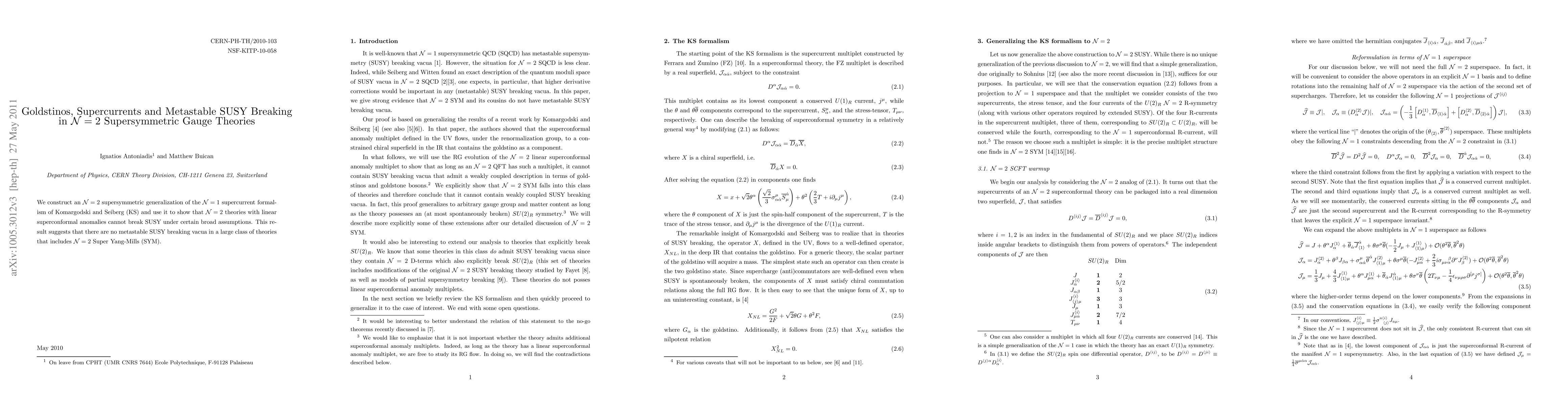 We construct an N=2 supersymmetric generalization of the N=1 supercurrent formalism of Komargodski and Seiberg (KS) and use it to show that N=2 theories with linear superconformal anomalies cannot break SUSY under certain broad assumptions. This result suggests that there are no metastable SUSY breaking vacua in a large class of theories that includes N=2 Super Yang-Mills (SYM).